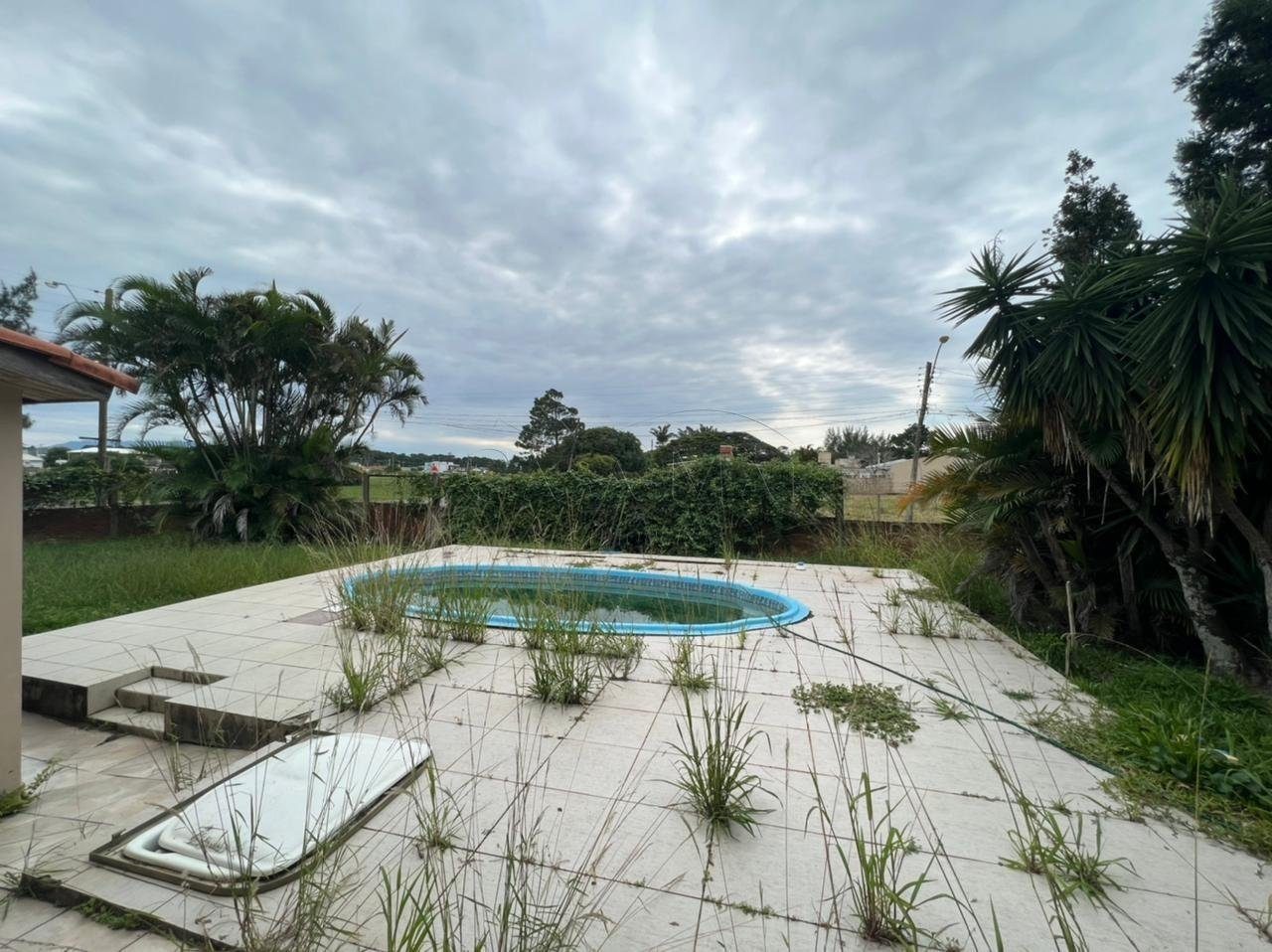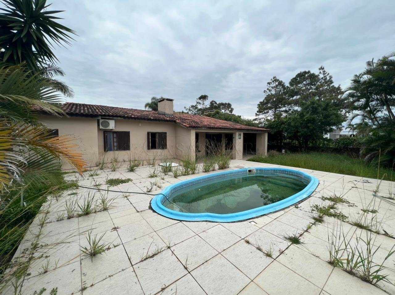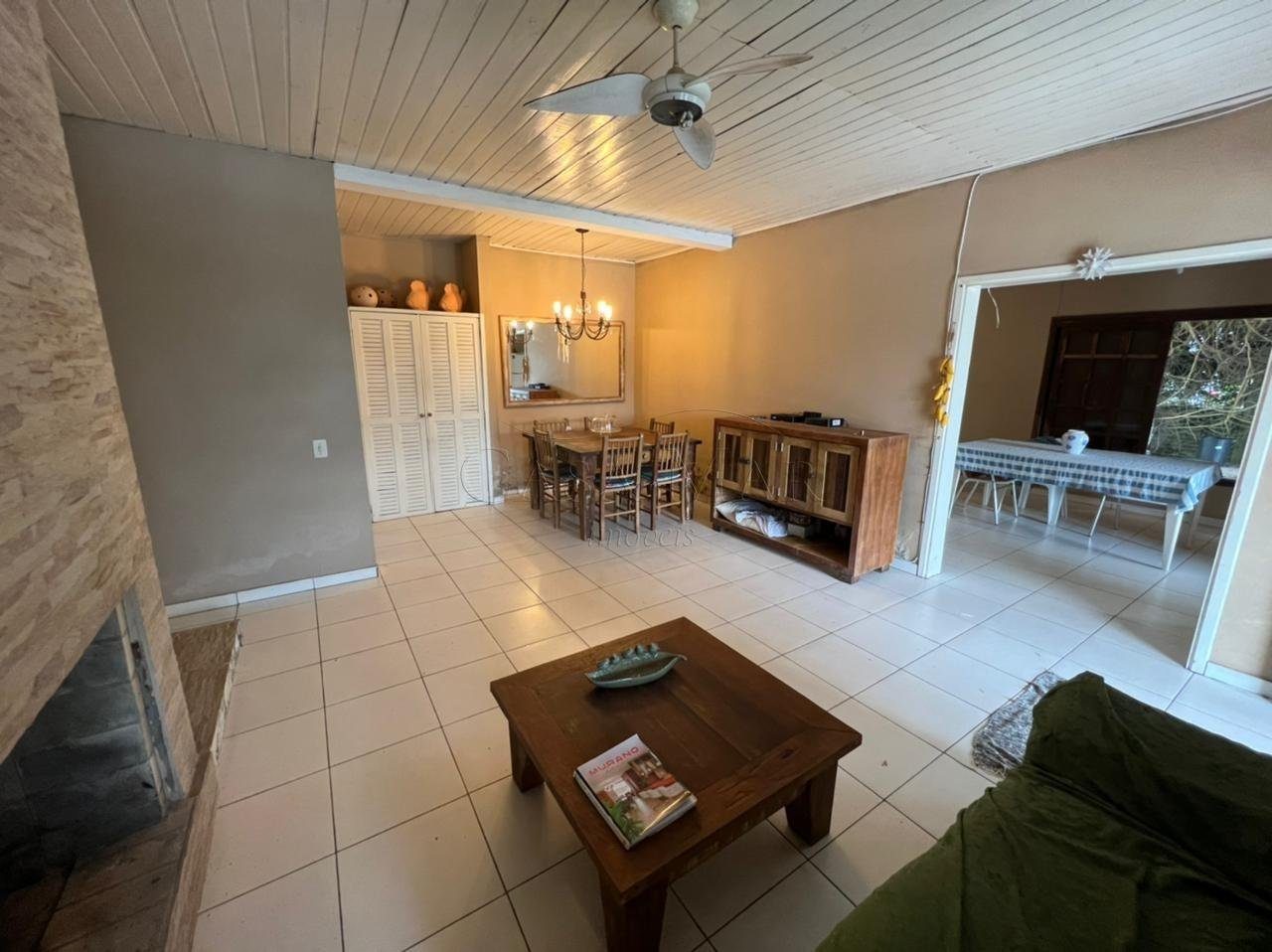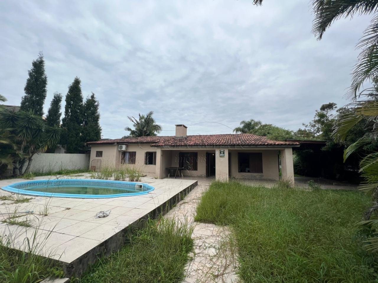 Casa Térrea composta por 04 dormitórios, sendo 01 suíte, banho social, living 02 ambientes com lareira, cozinha, churrasqueira, área de serviço, piscina e vaga para 02 carros.