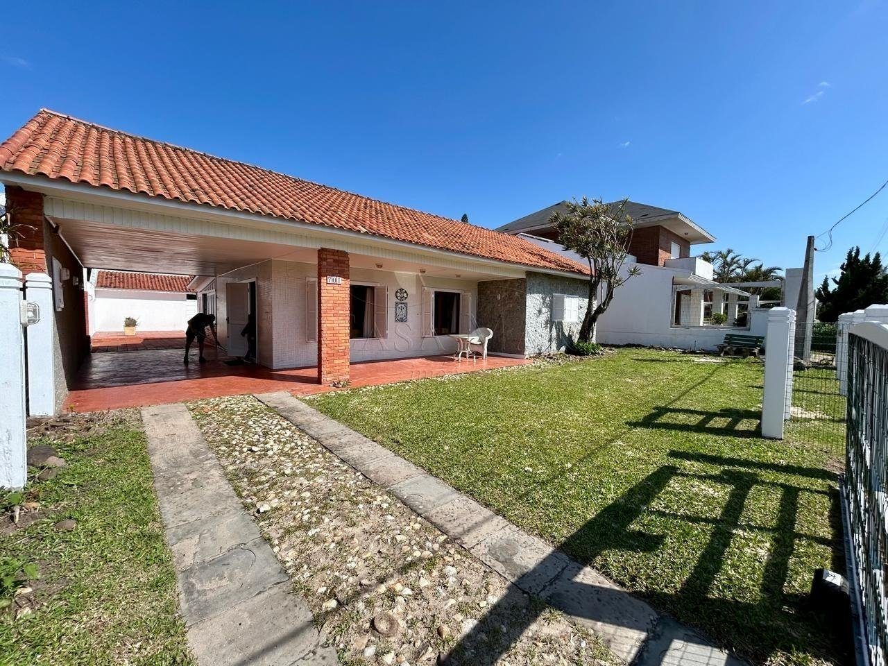 Casa em Atlântida composta por 04 suítes, living amplo com lareira, banho social, cozinha, churrasqueira, área de serviço, piscina, pátio fechado.