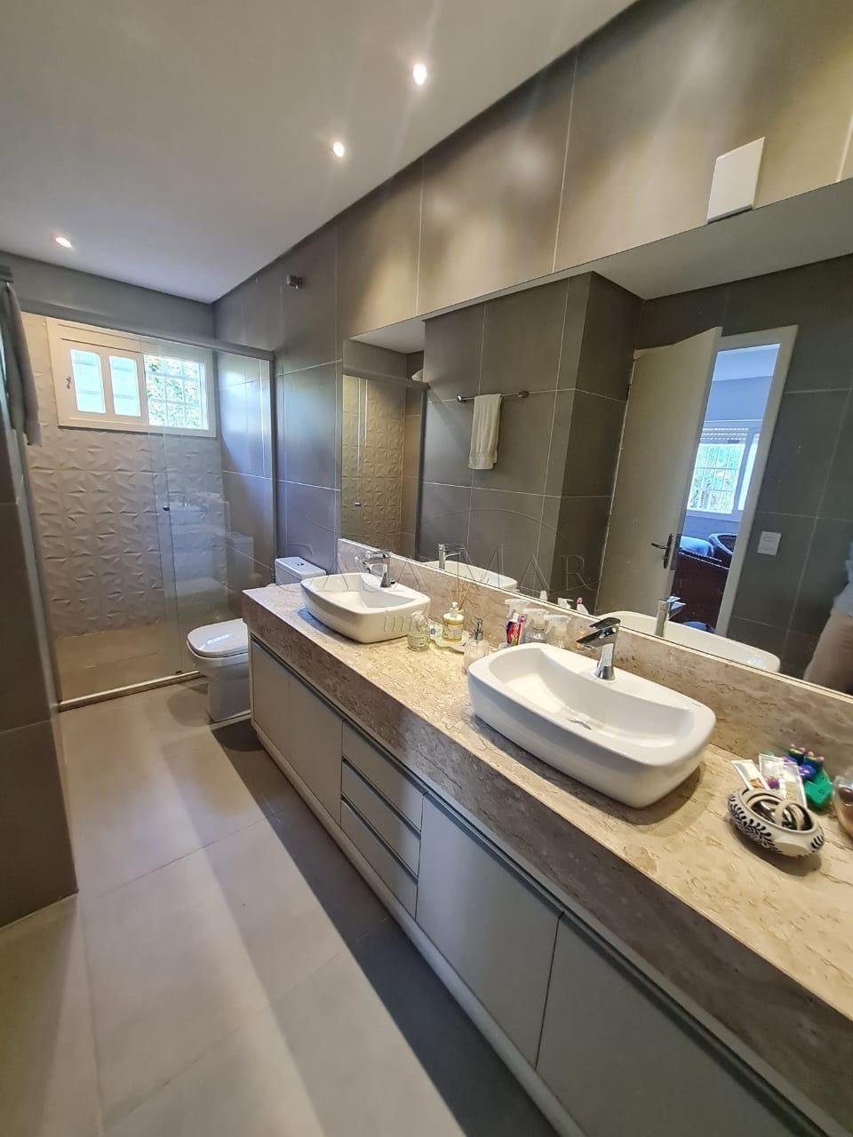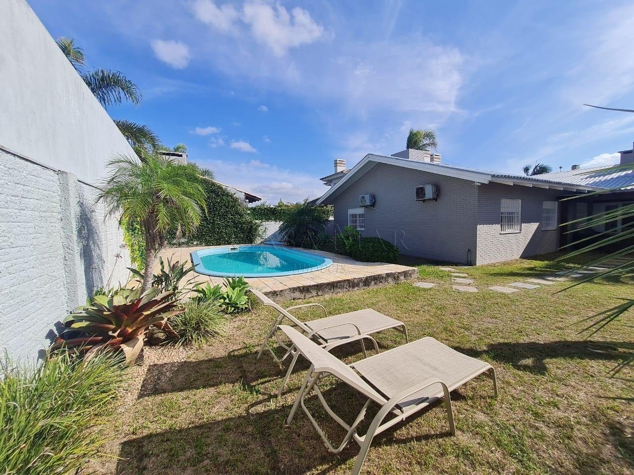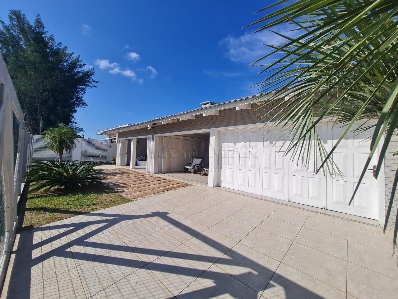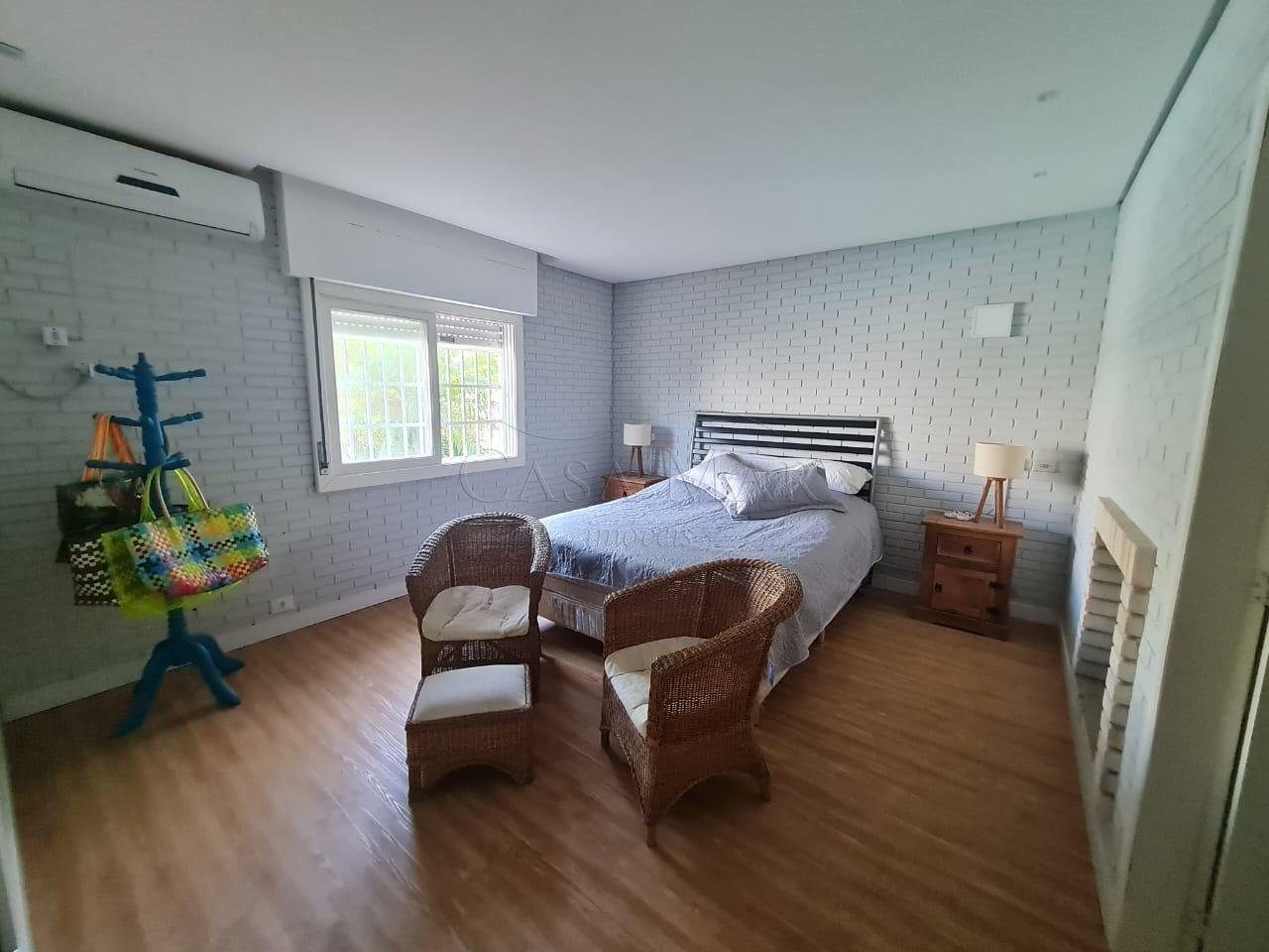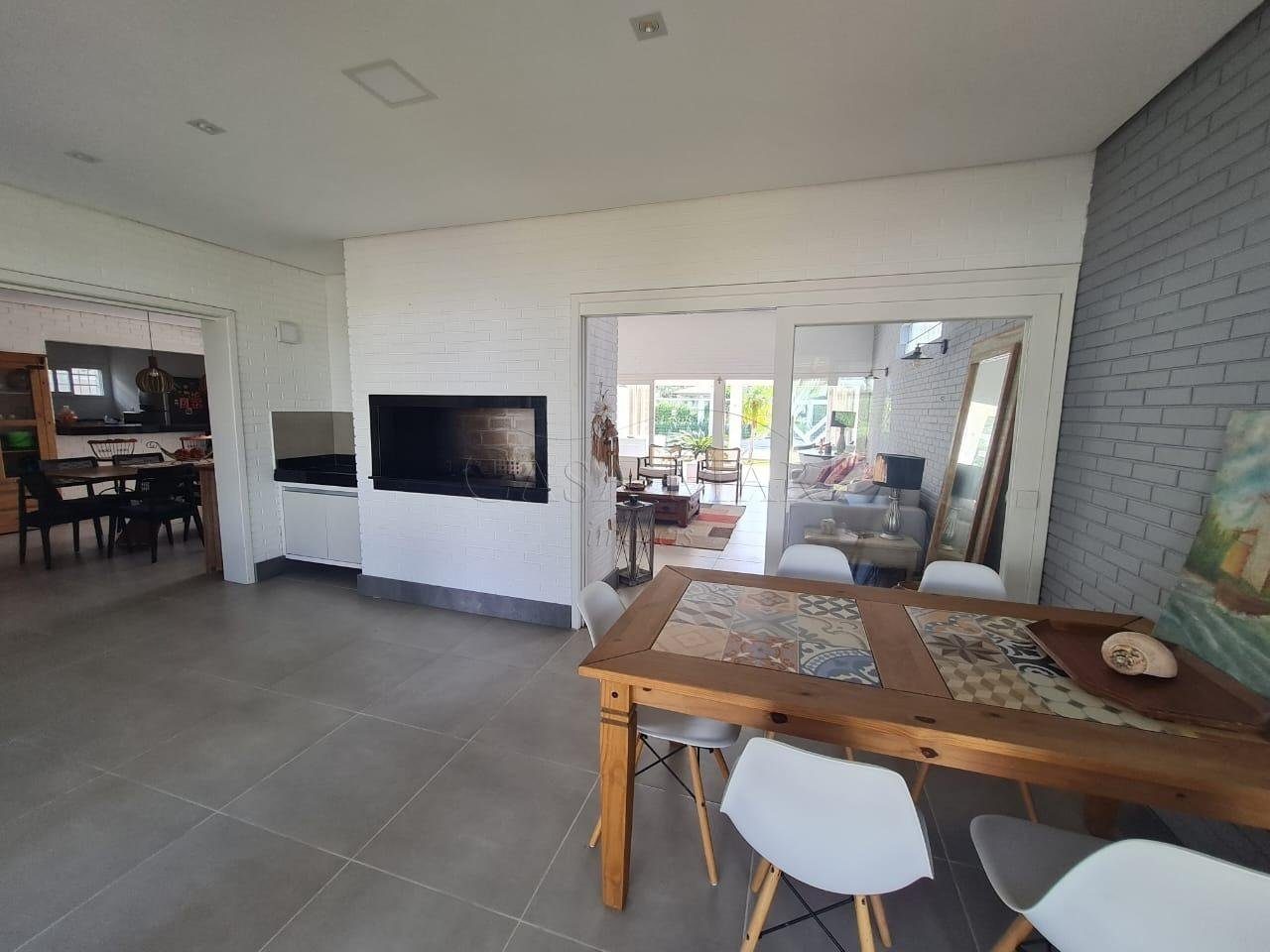 Casa composta por 05 dormitório, suíte com lareira, cozinha americana, living 03 ambientes com lareira, pé direito alto, espaço gourmet, varanda, lavanderia, banheiro social, garagem para carros fechada, amplo pátio fechado com paisagismo e piscina.