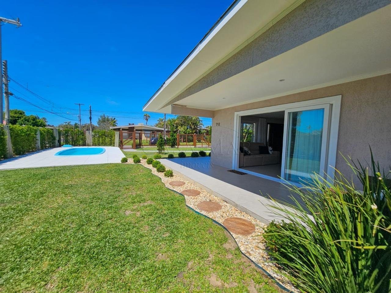 Linda casa de esquina na praia de Atlântida, frente leste, próxima da divisa de Capão da Canoa, forro em laje, mobiliada, com 03 dormitórios, sendo 01 suíte, living em 02 ambientes, lavabo, cozinha americana, churrasqueira, área de serviço, varanda, pátio amplo, piscina e garagem fechada.