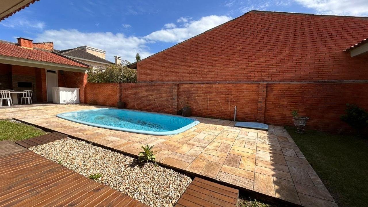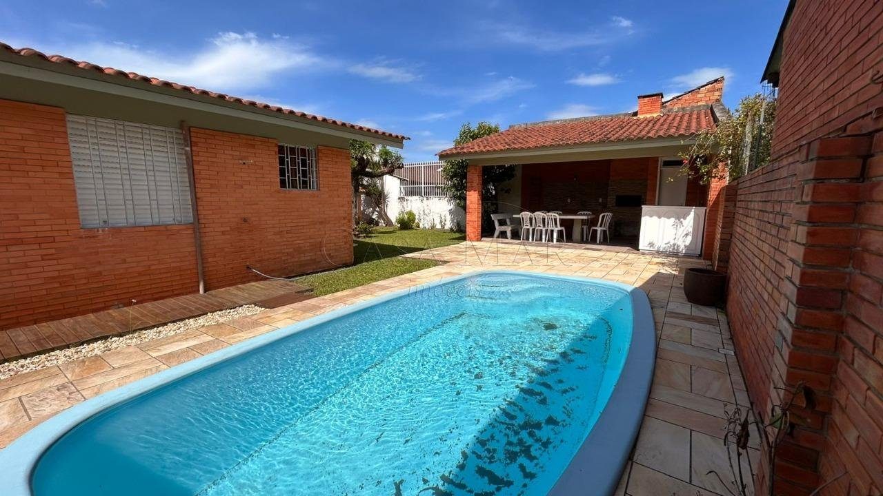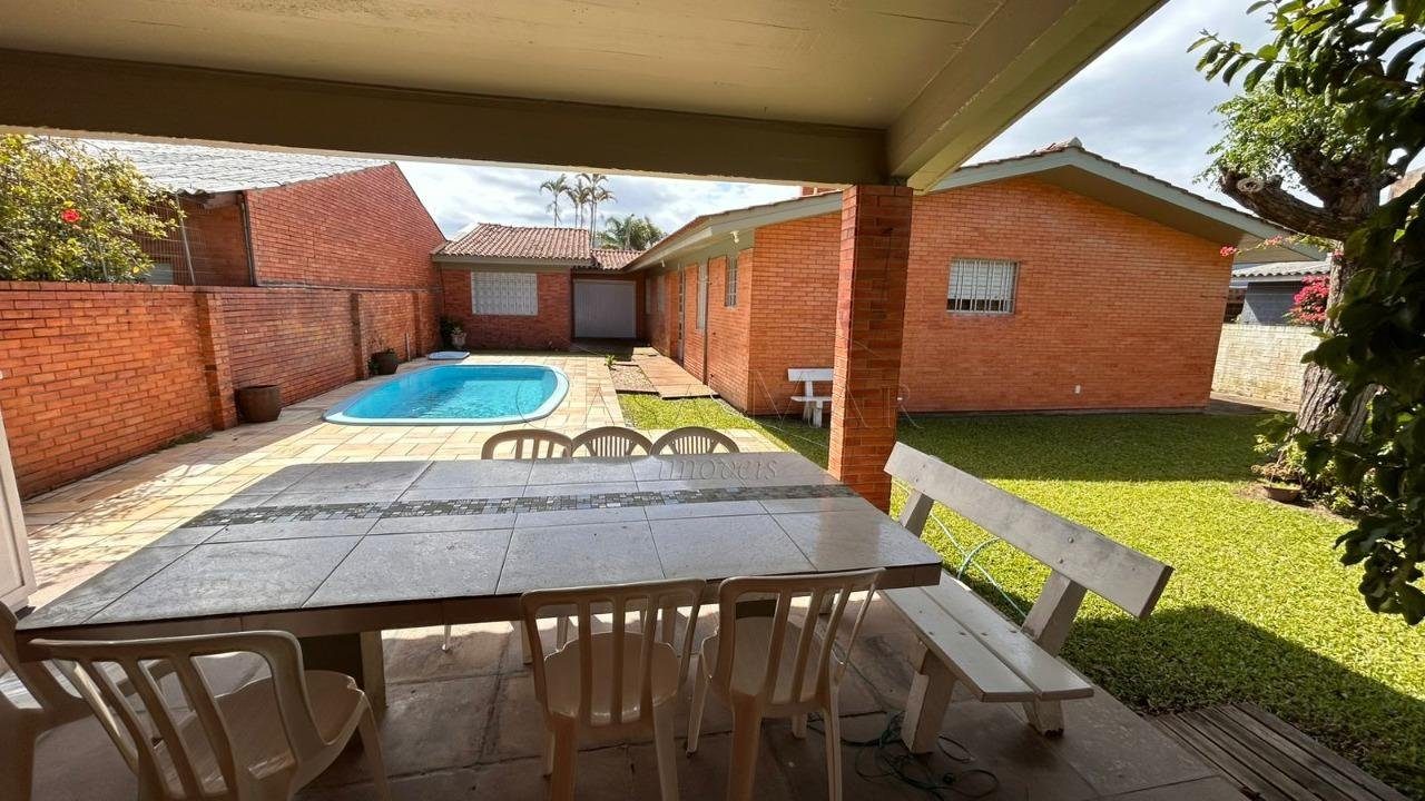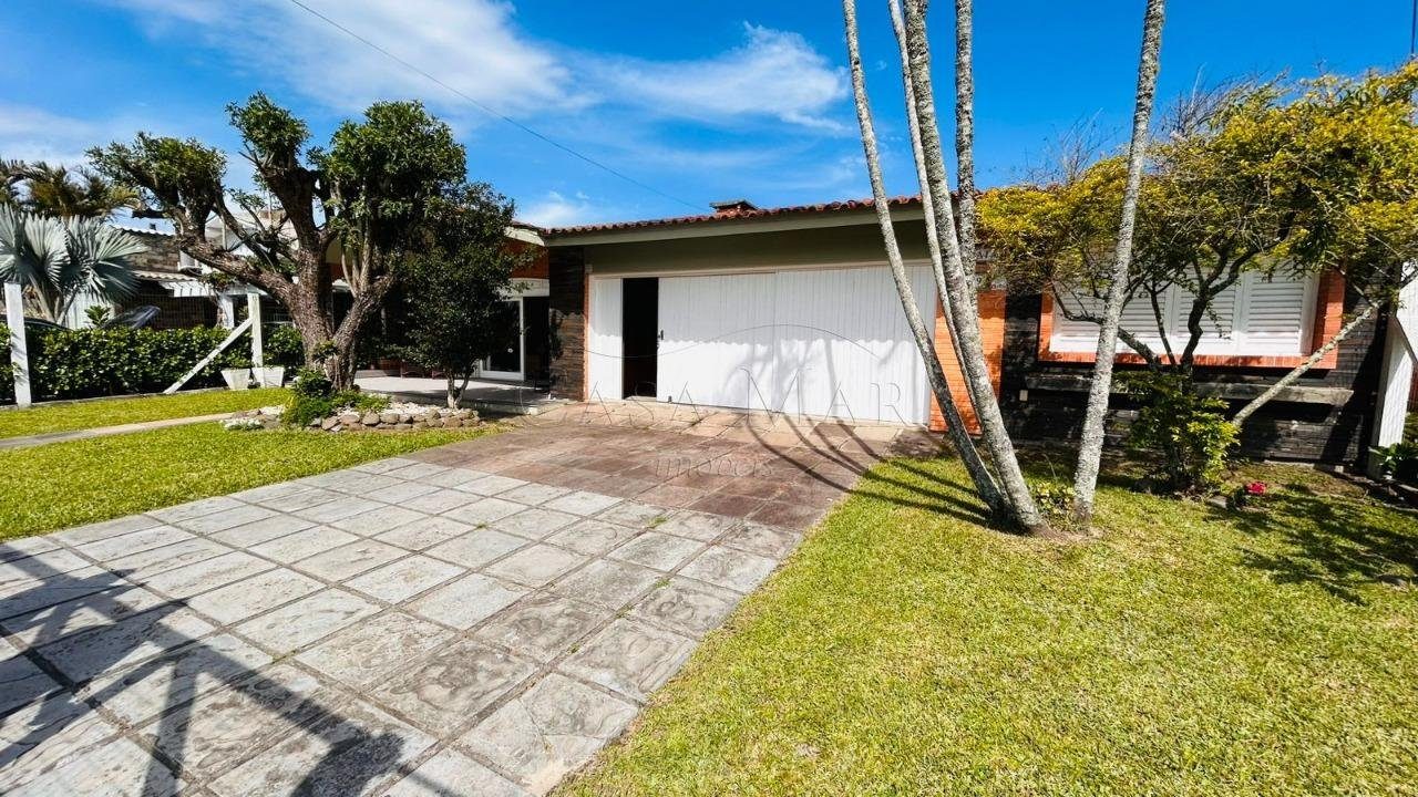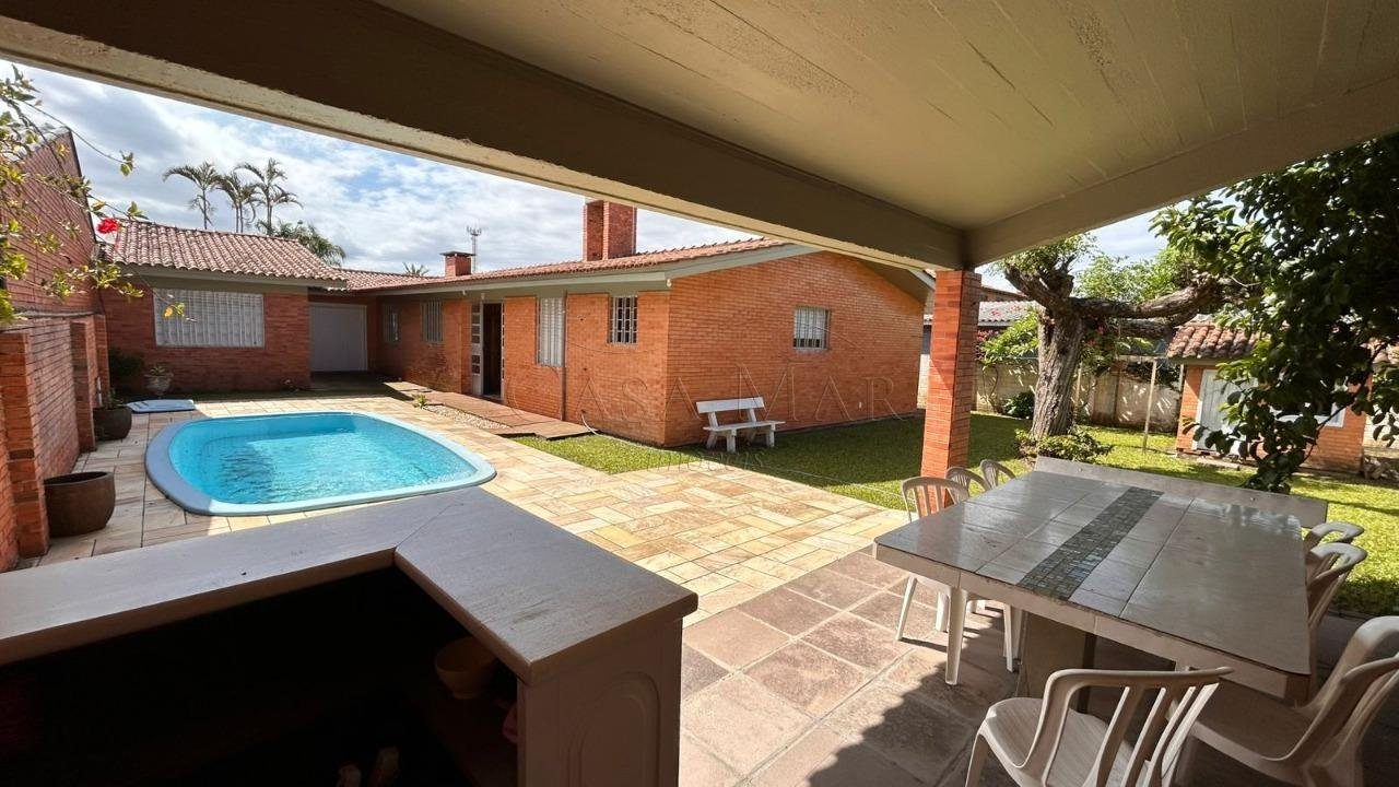 Casa térrea forro em laje com ótima localização próximo ao mar em Atlântida, composto por 05 dormitórios, banho social, living em 04 ambientes, lareira, cozinha, área de serviço, pátio frente e fundos, quiosque com churrasqueira, piscina e garagem fechada para 03 carros!