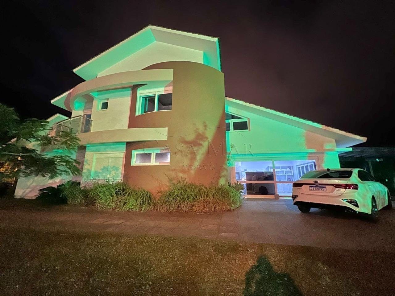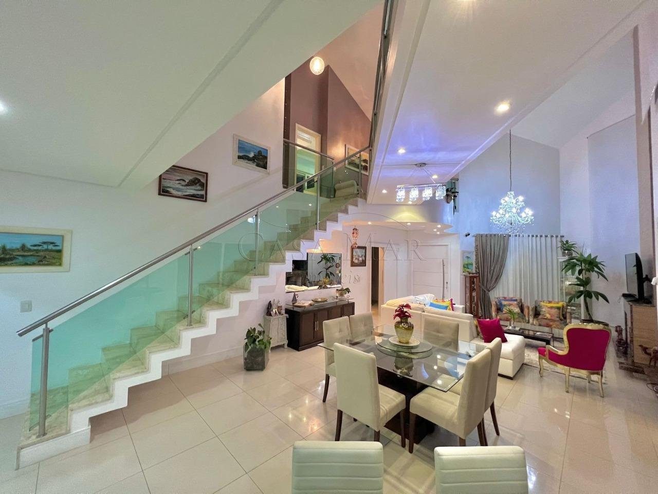 Belíssimo sobrado, composto por 04 suítes, sendo 01 máster e 02 americanas, lavabo, living 03 ambientes com lareira, cozinha americana, mezanino, lavanderia com banheiro, salão de festas com churrasqueira, espaço jardim de inverno, estúdio, pátio amplo com campo de futebol e piscina, garagem para 02 carros.