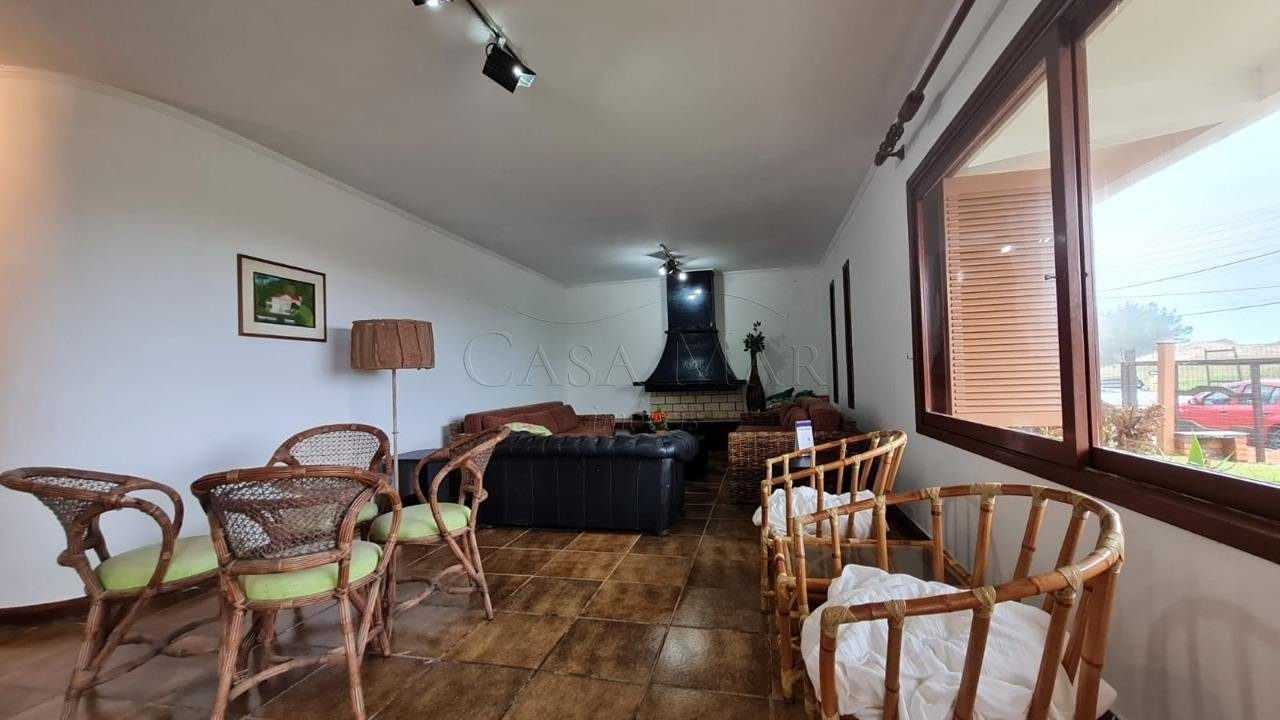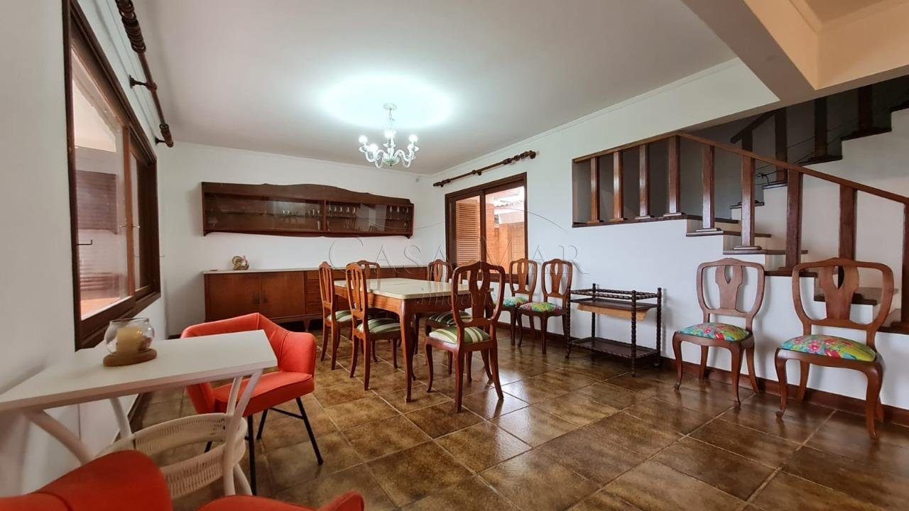 Sobrado frente leste, composto por 05 dormitórios (04 suítes), living integrado 02 ambientes (com lareira), 01 lavabo, 01 banheiro, estar íntimo (com lareira), área de serviço, cozinha, depósito, varanda (com acesso ao pátio), pátio em frente e nos fundos, garagem para 04 carros (com espaço gourmet e churrasqueira).
