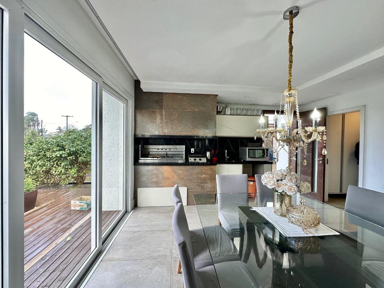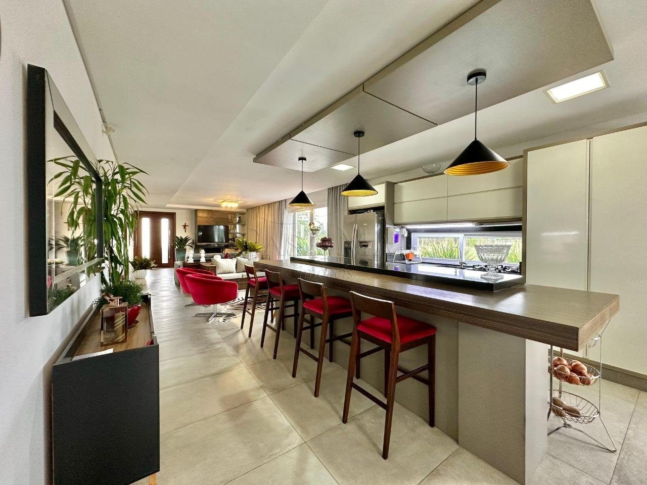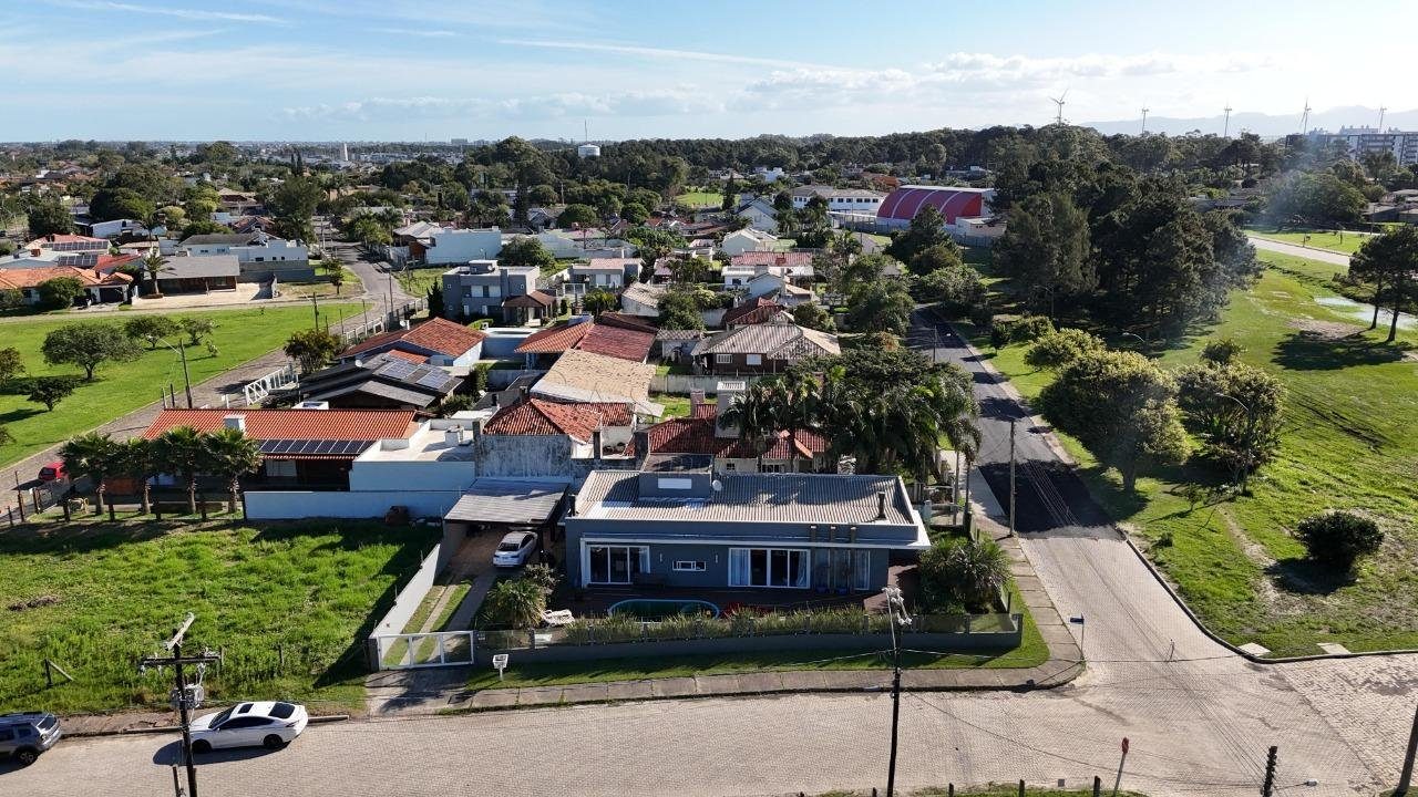 Casa de esquina, composta por 03 dormitórios sendo 01 suíte, banho social, living integrado, lareira, cozinha americana com churrasqueira, excelente iluminação natural, deck com piscina aquecida, amplo pátio.