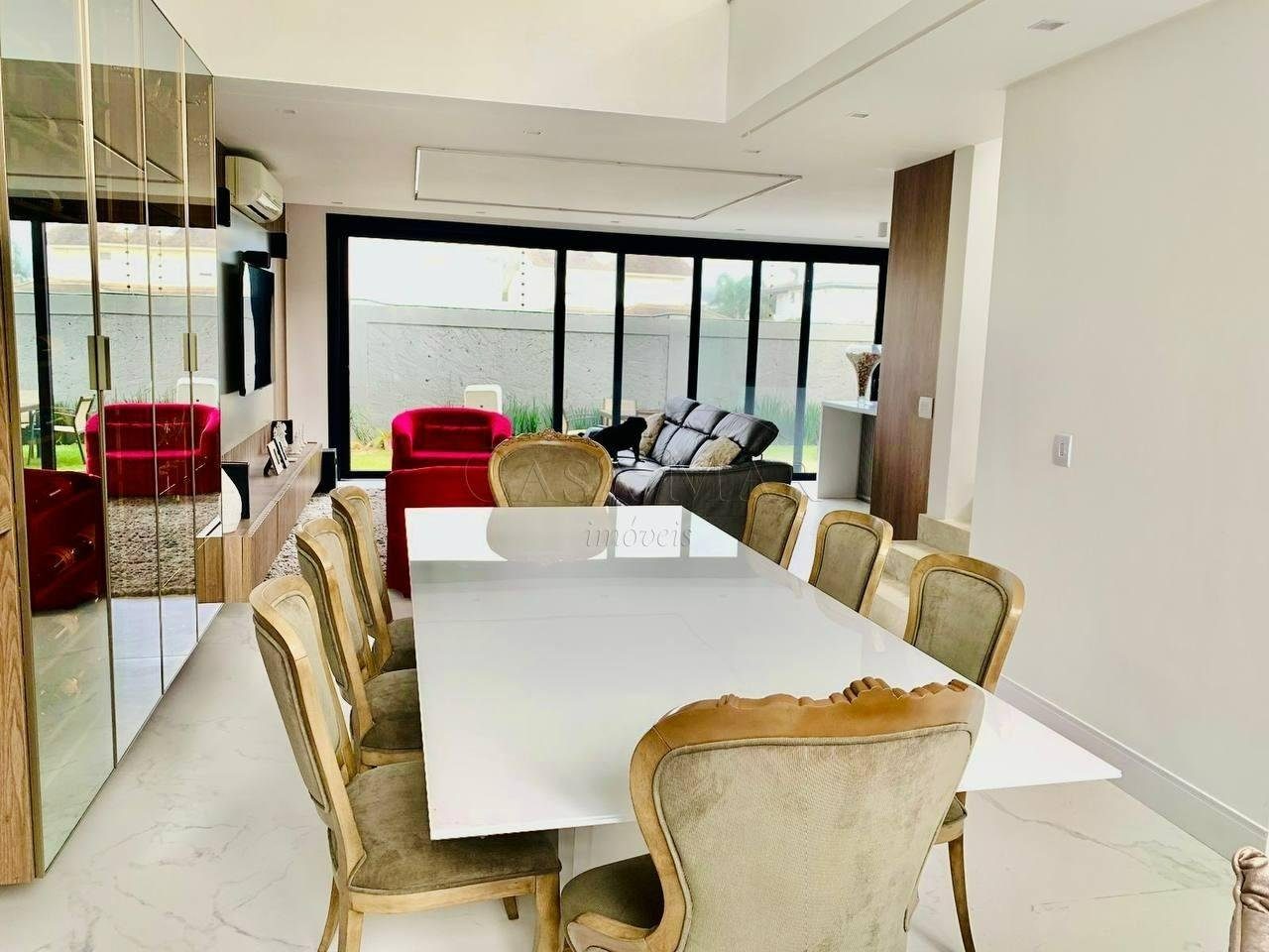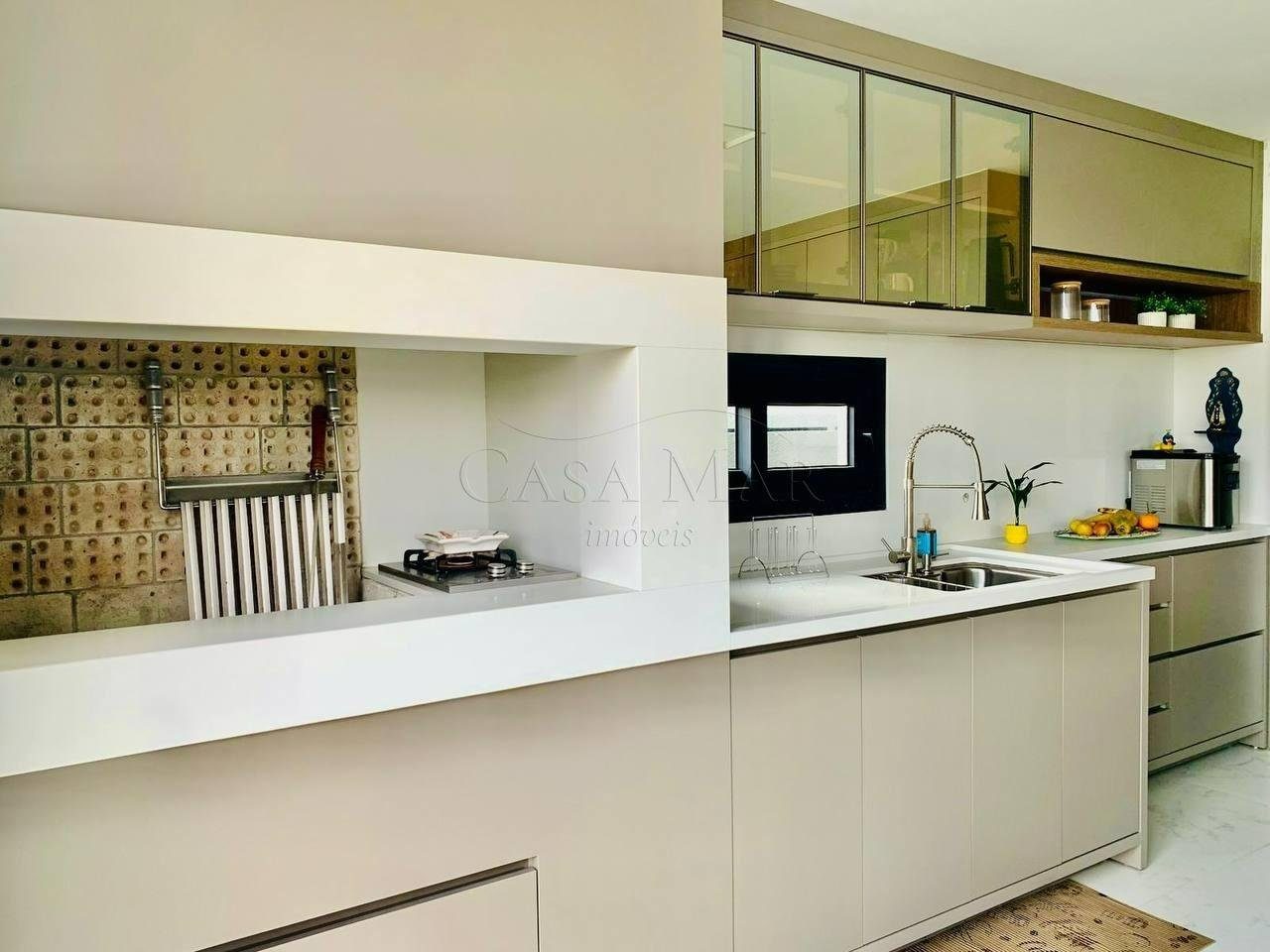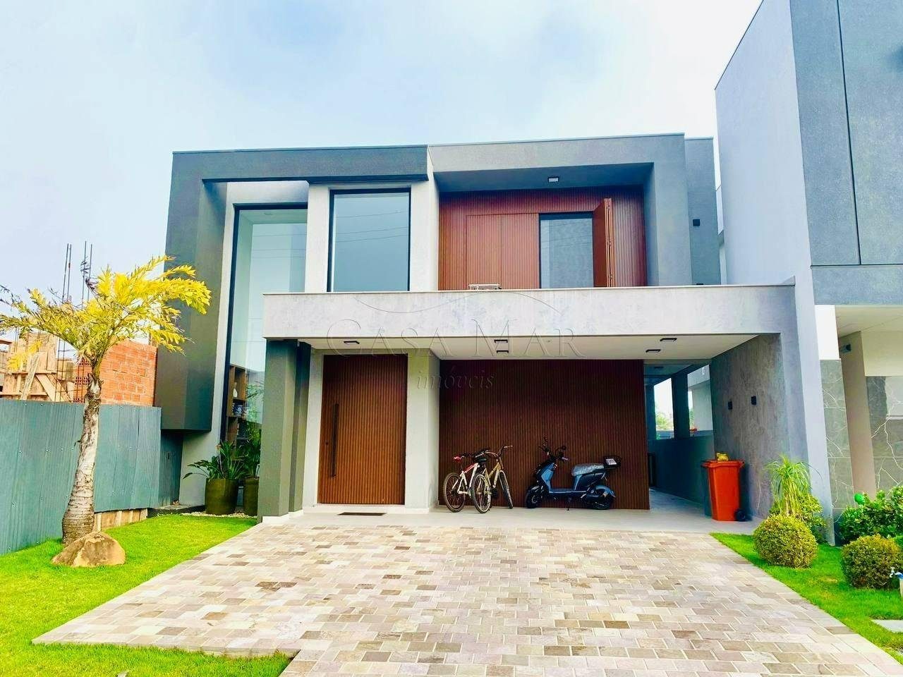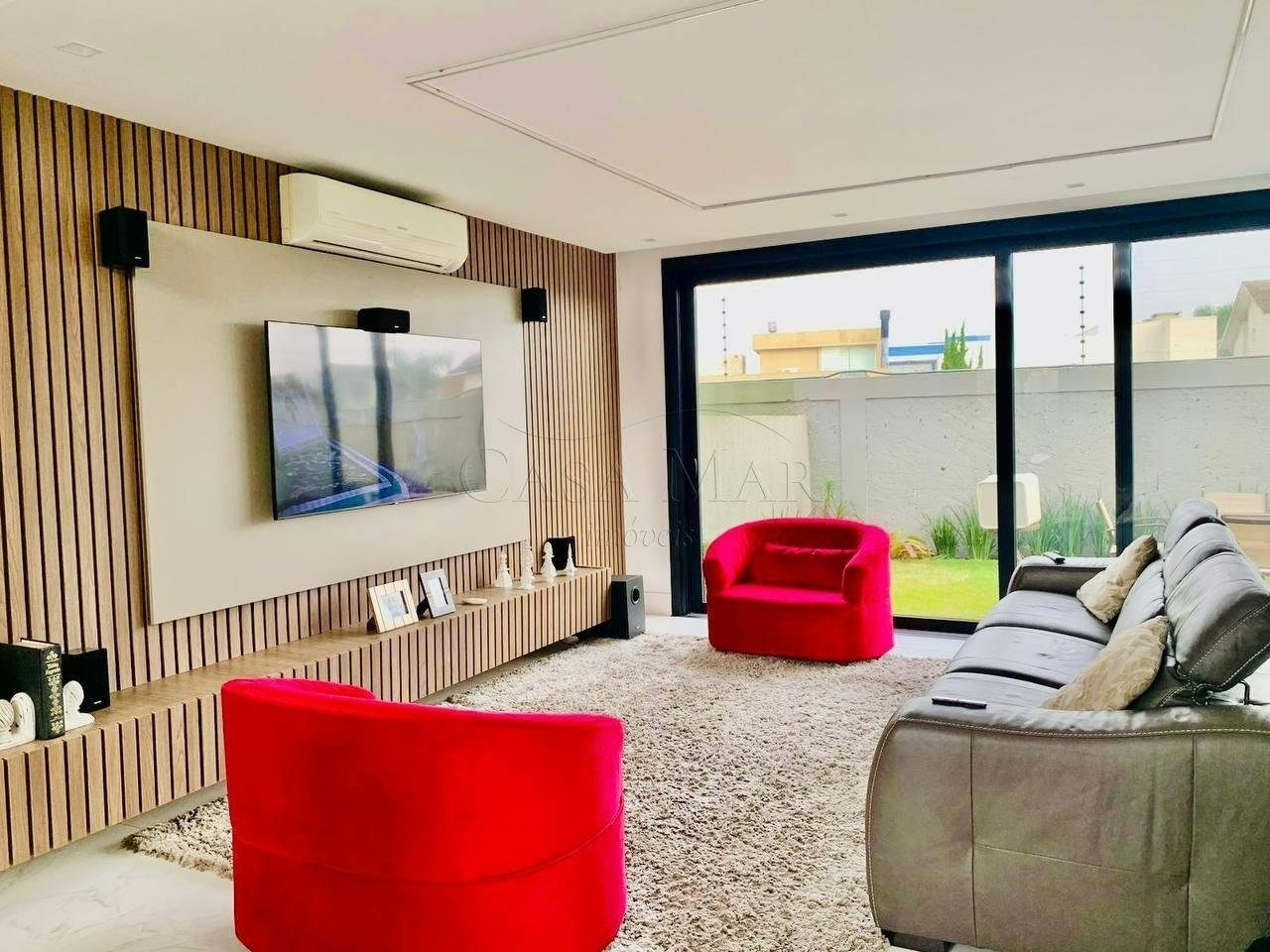 Composto por 04 suítes, sendo 01 térrea e 01 master, living em 02 ambientes com lareira, cozinha americana, churrasqueira, lavabo, área de serviço, varanda, pátio amplo, paisagismo e abrigo para carros.
