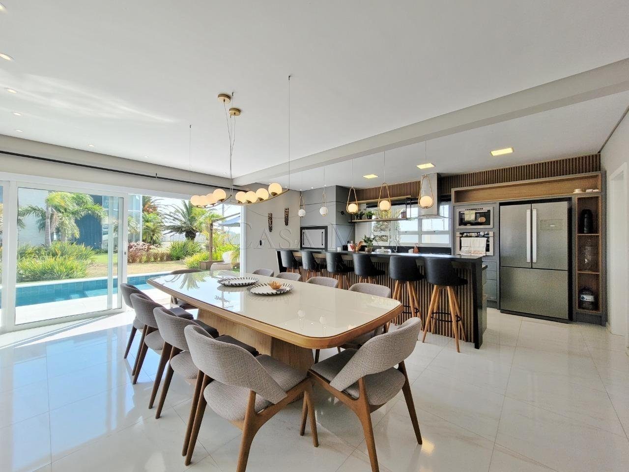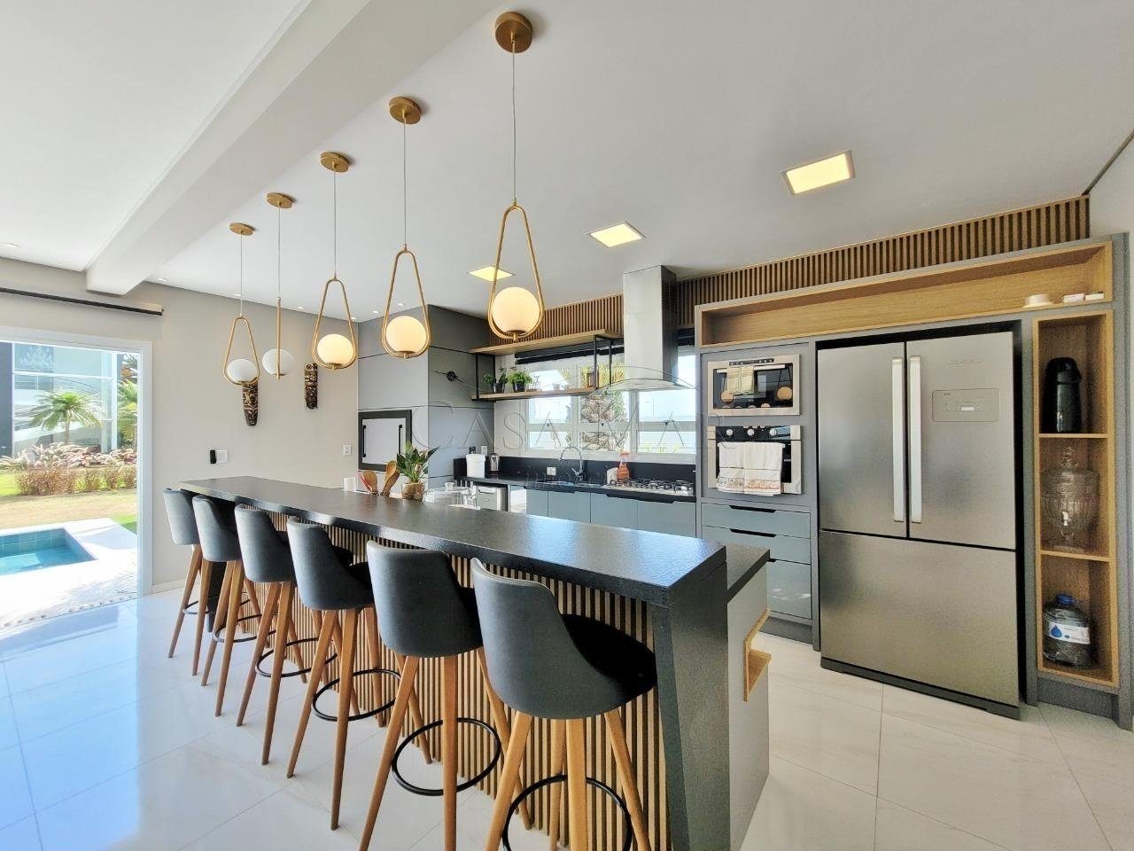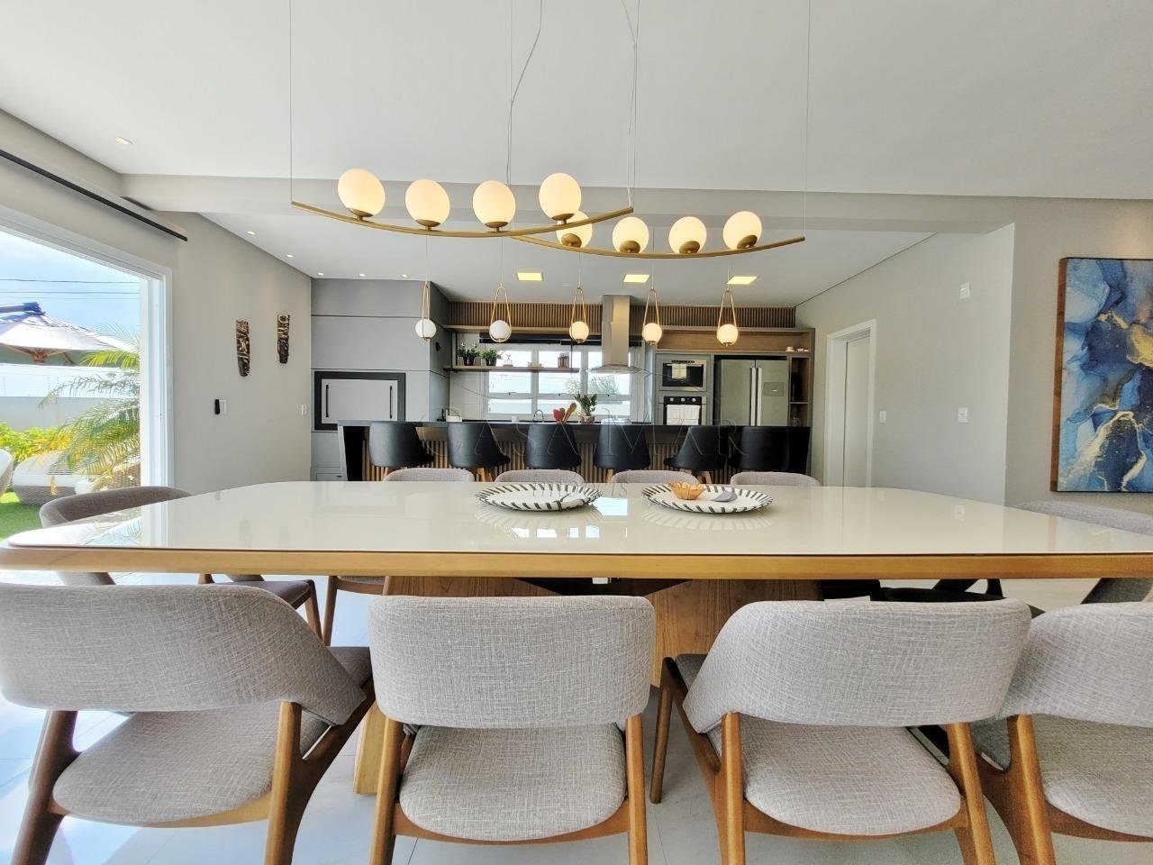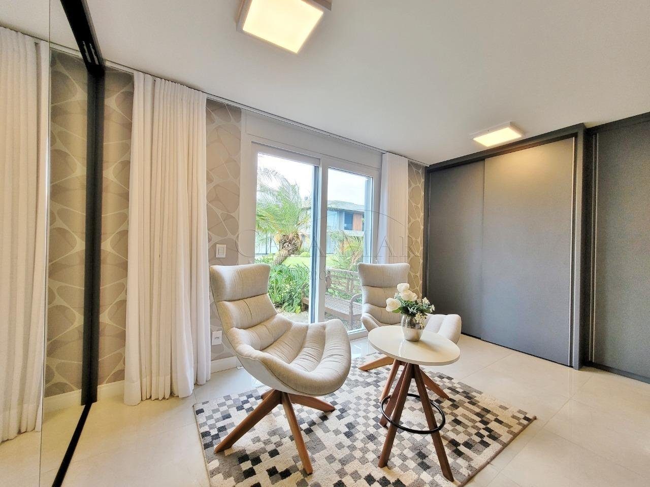 Belíssima casa térrea com excelente localização em condomínio conceituado na praia de Xangri-Lá. Composta por 04 suítes, pé direito duplo, living em 03 ambientes com lareira, lavabo, cozinha americana com churrasqueira, lavanderia, fundos para área verde, e vagas para 02 carros.