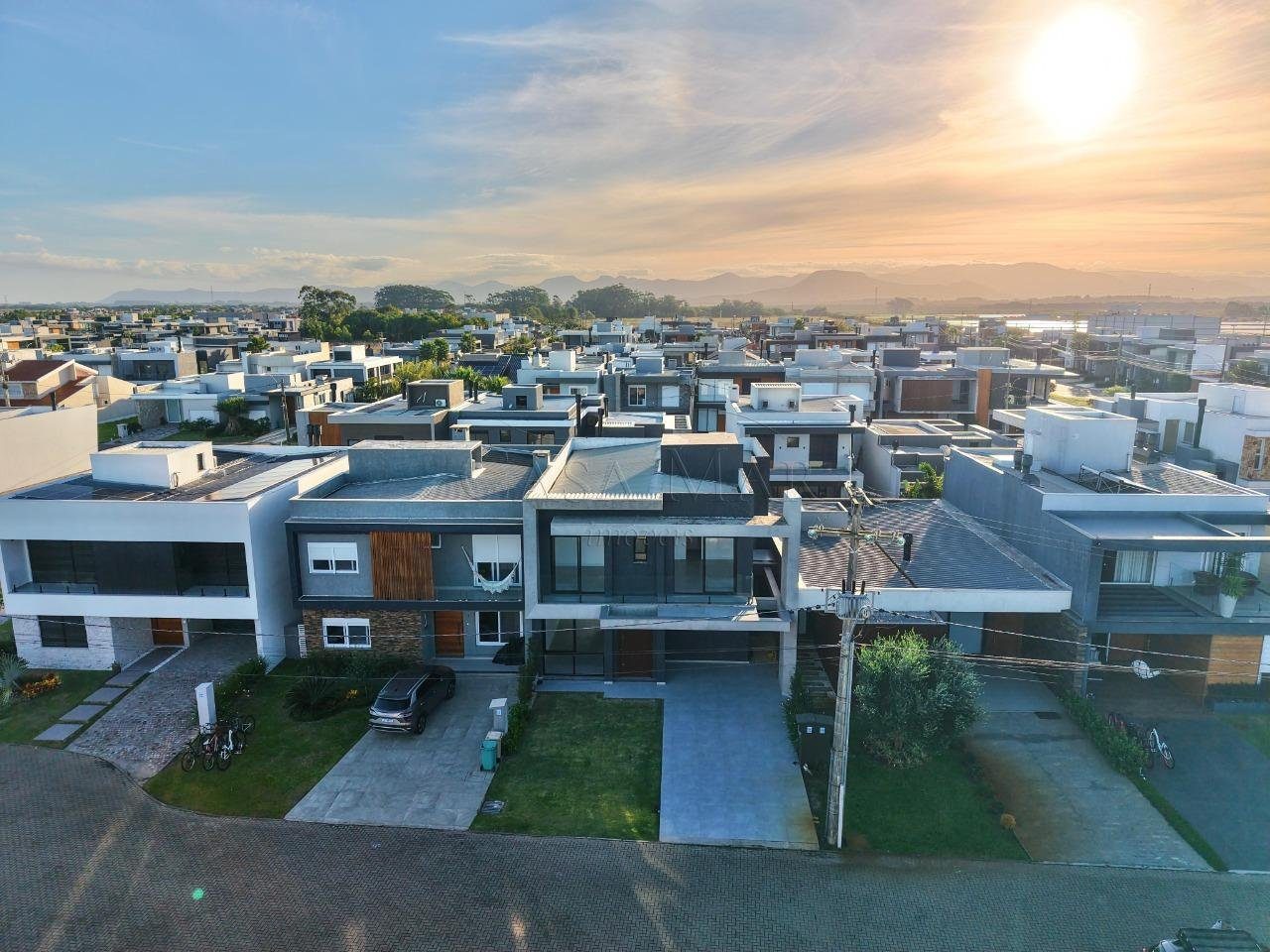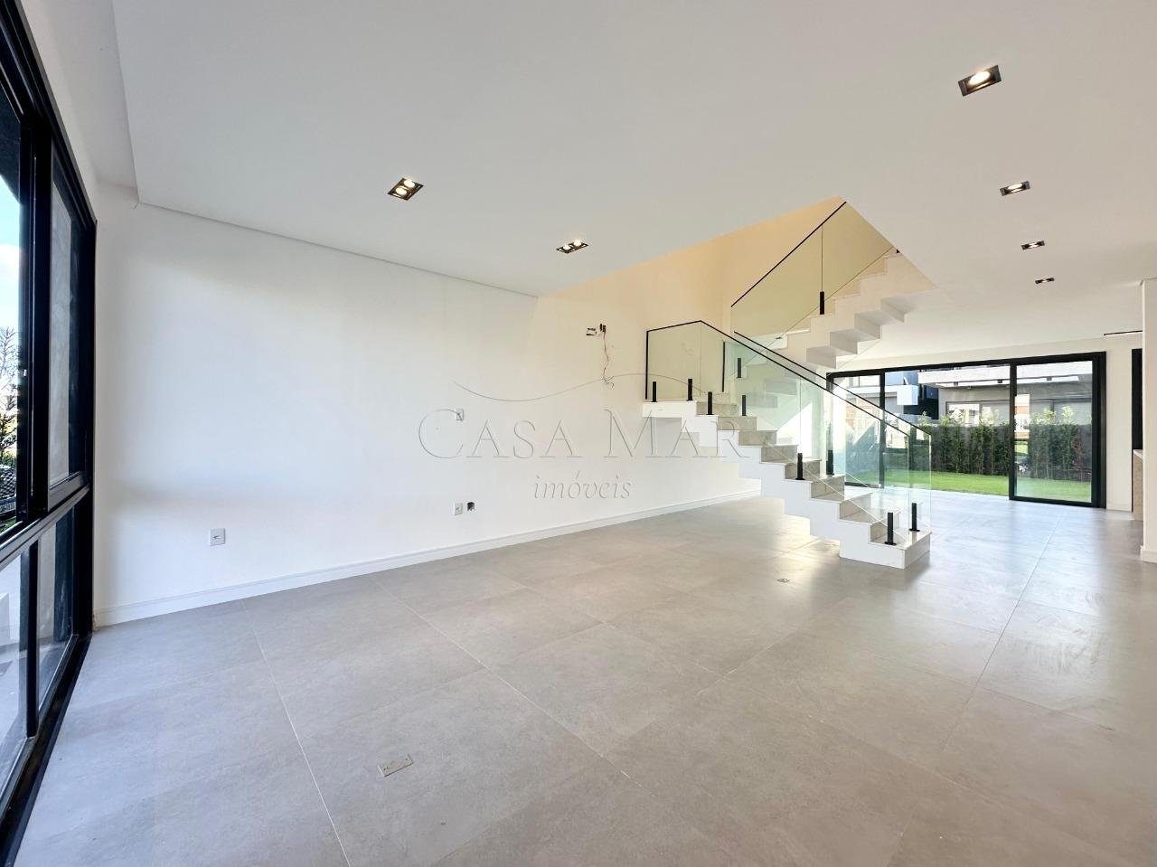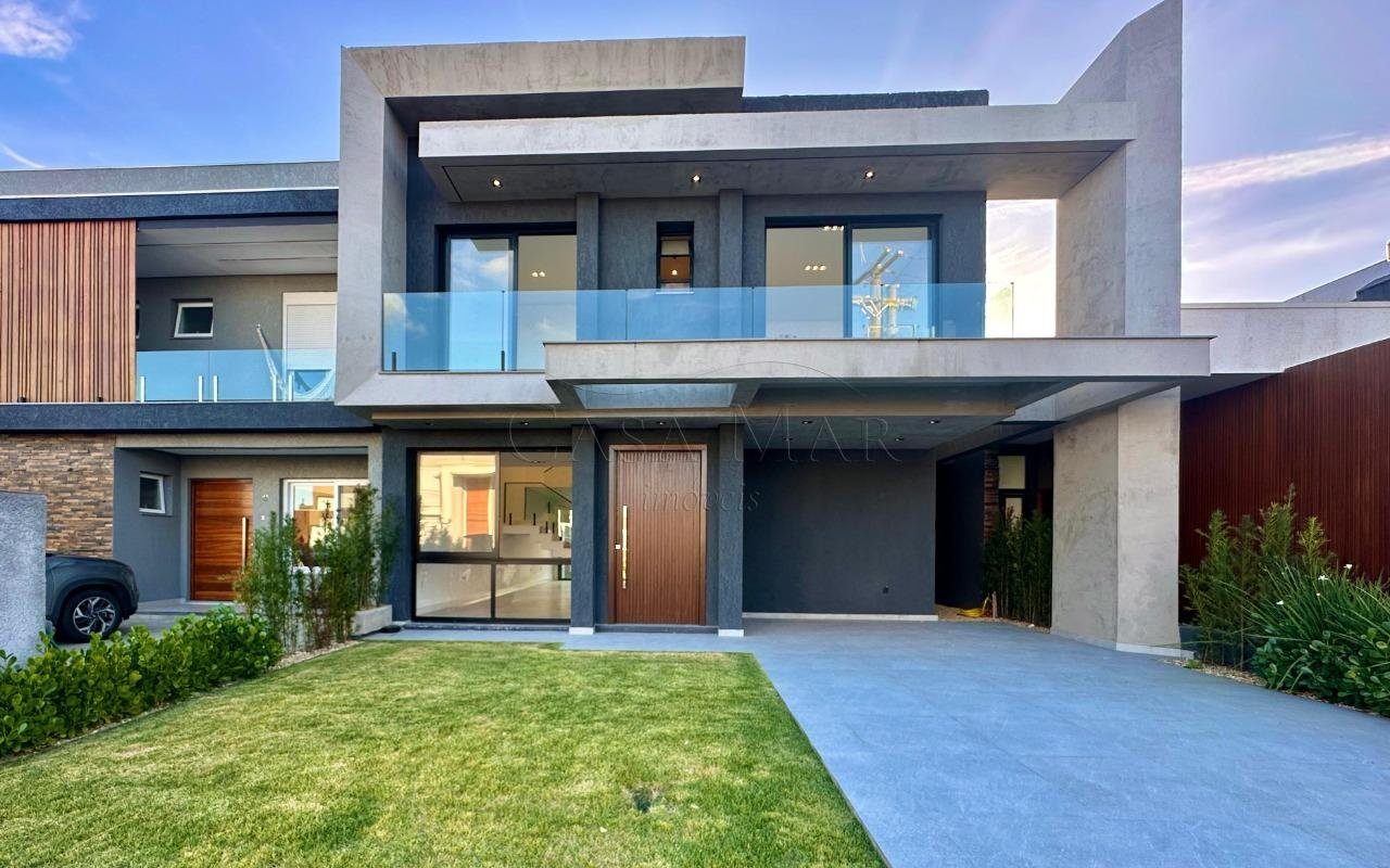 Sobrado com pé direito alto, ótimo padrão construtivo, com móveis fixos, excelente localização no condomínio Blue, composto por 05 suítes, sendo 01 térrea, lavabo, living em 02 ambientes com lareira, cozinha americana, espaço gourmet com churrasqueira, área de serviço, pátio e abrigo para 02 carros.