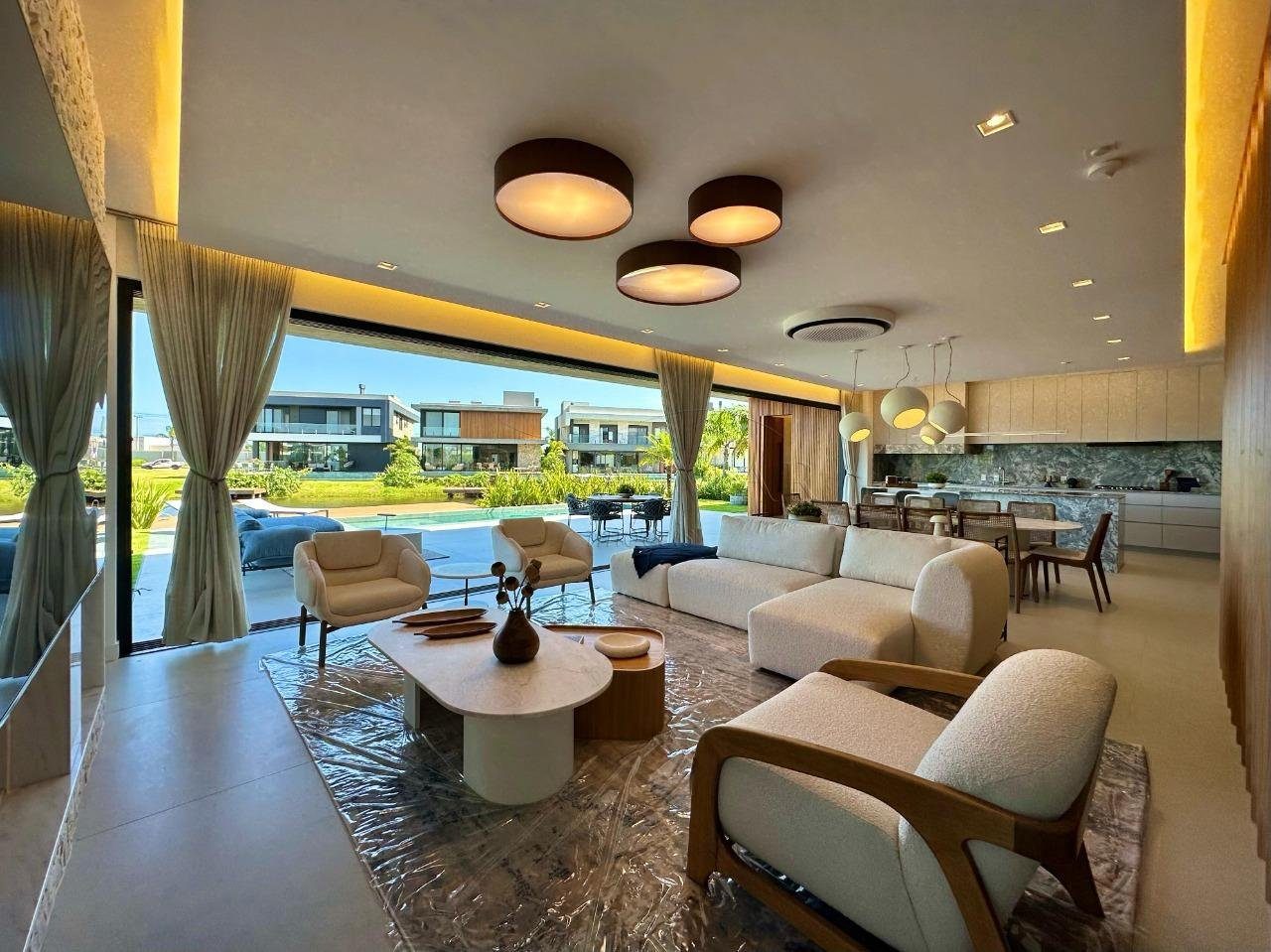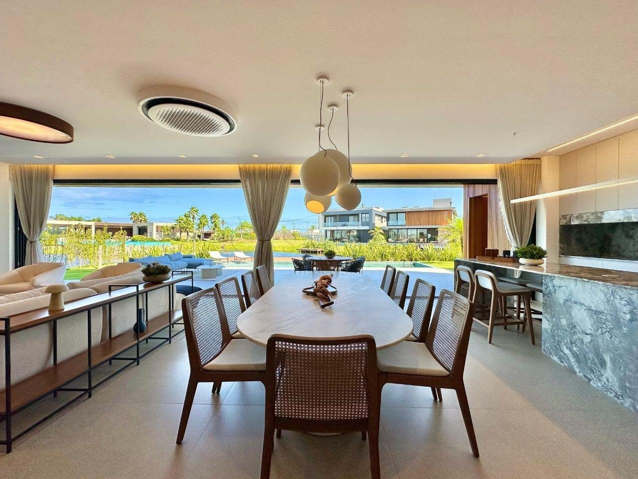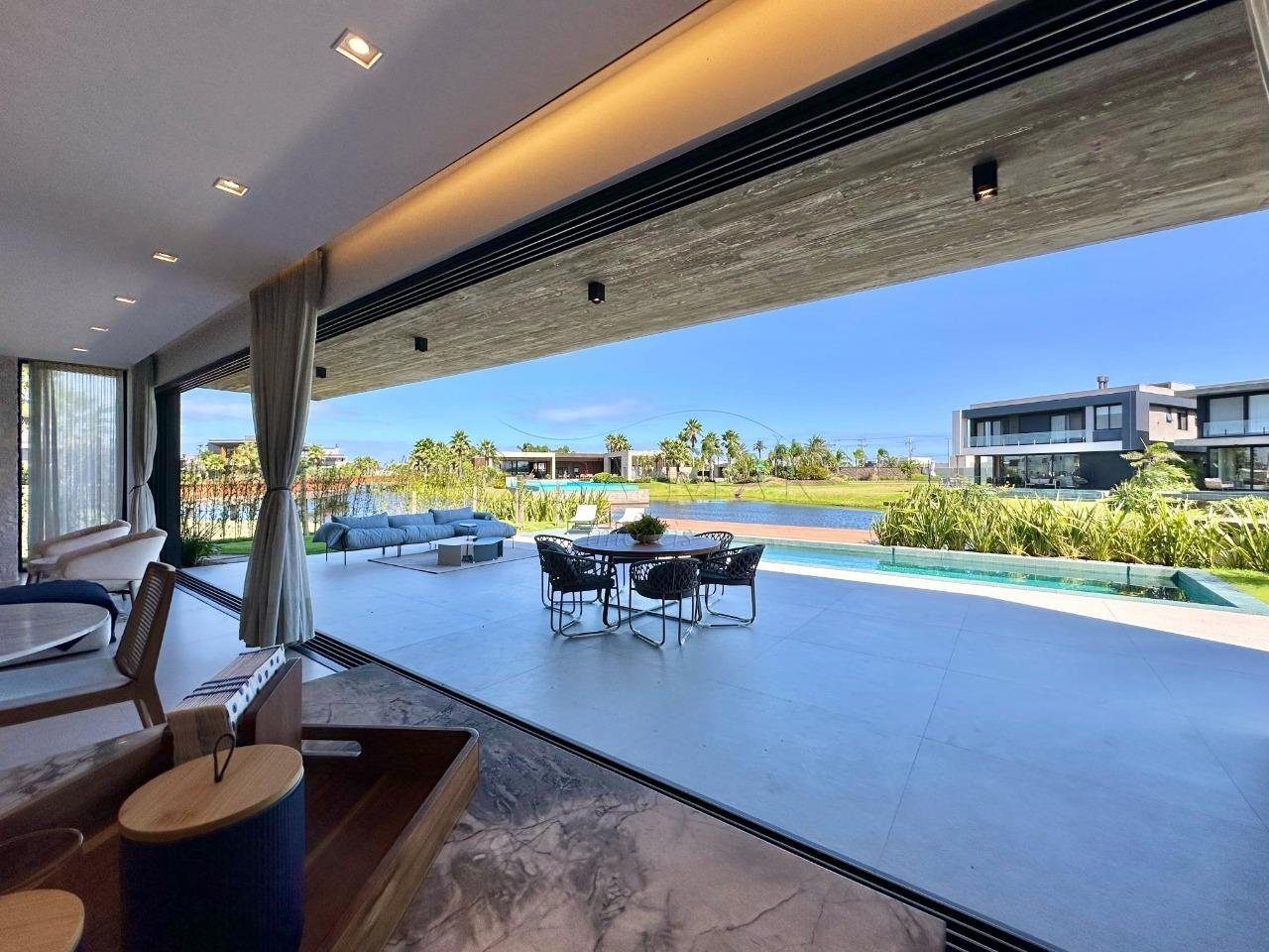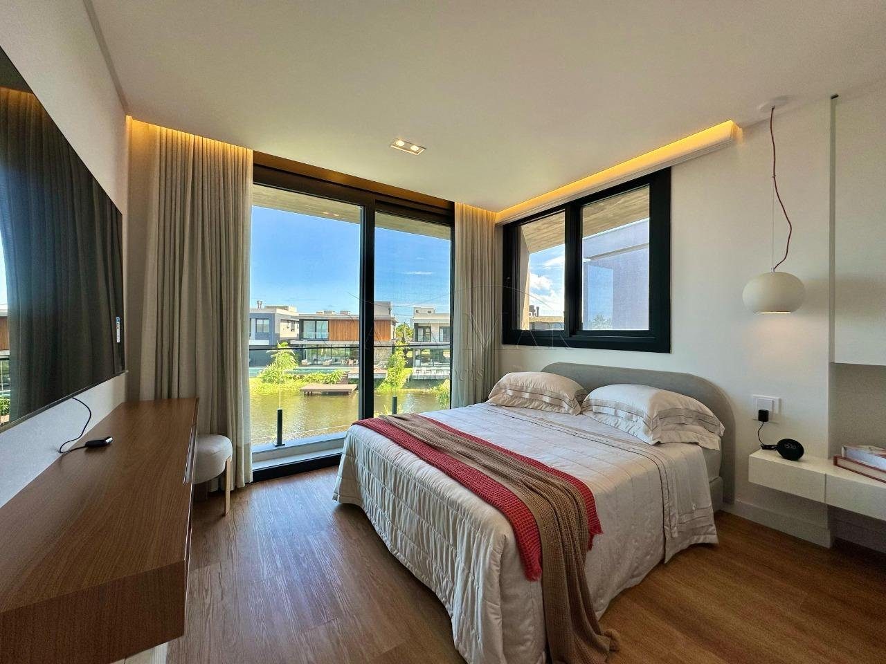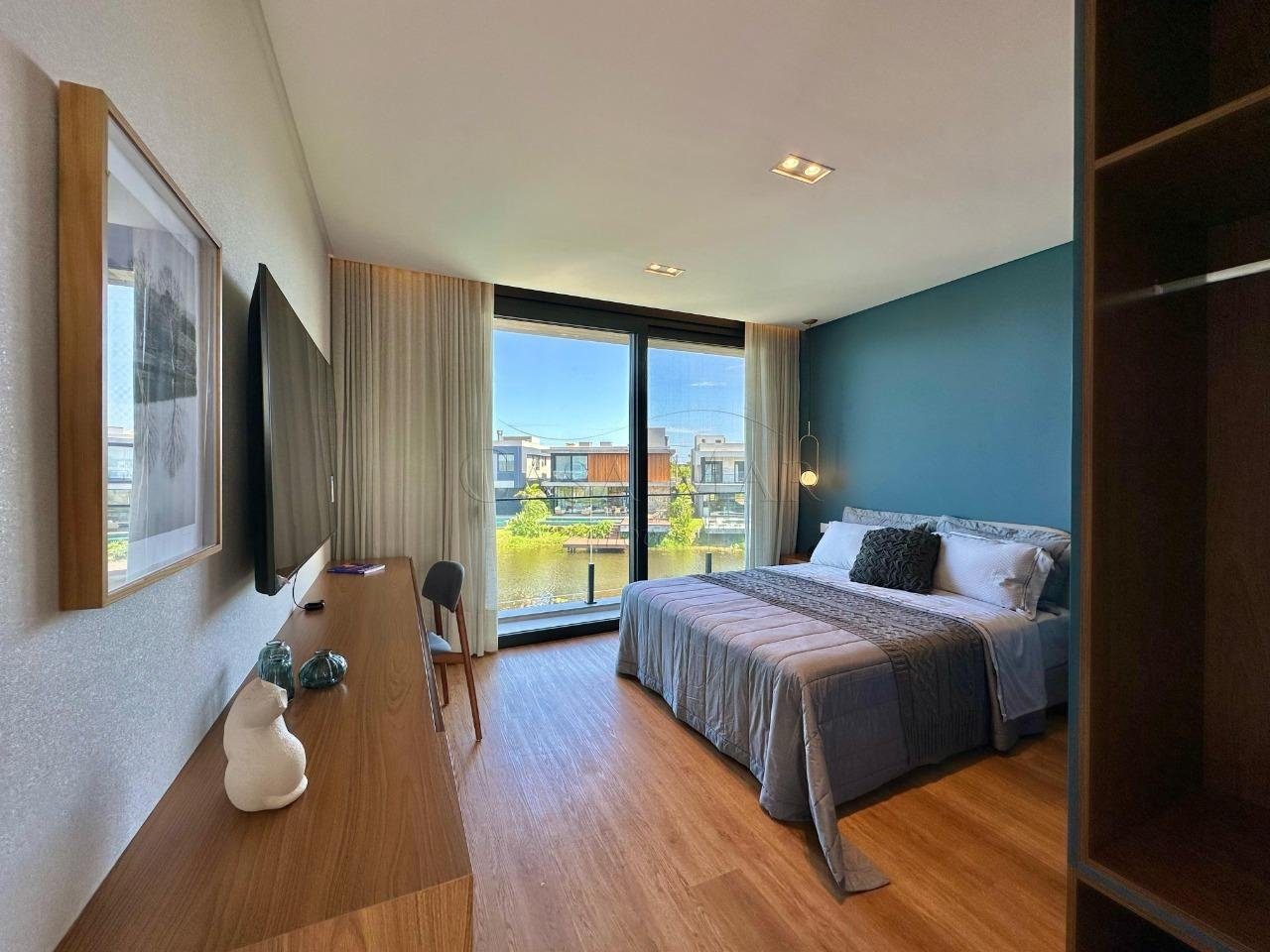 Belíssimo sobrado beira lago, composto por 04 suítes, sendo 01 térrea, lavabo, living em 03 ambientes com lareira, cozinha americana com churrasqueira, varanda, área de serviço, piscina e vaga para 02 carros.