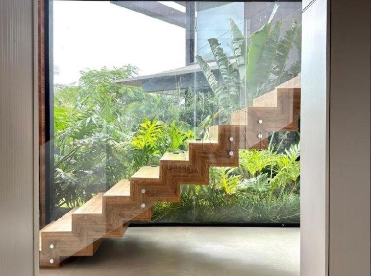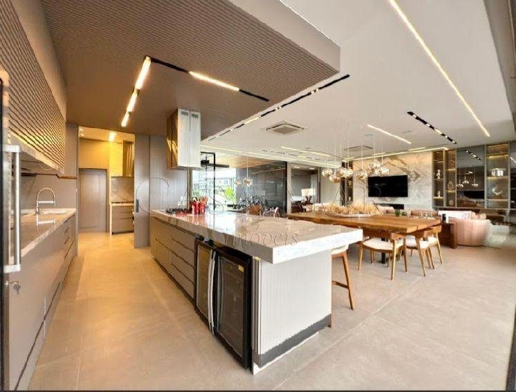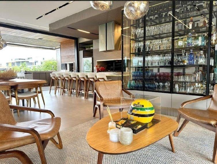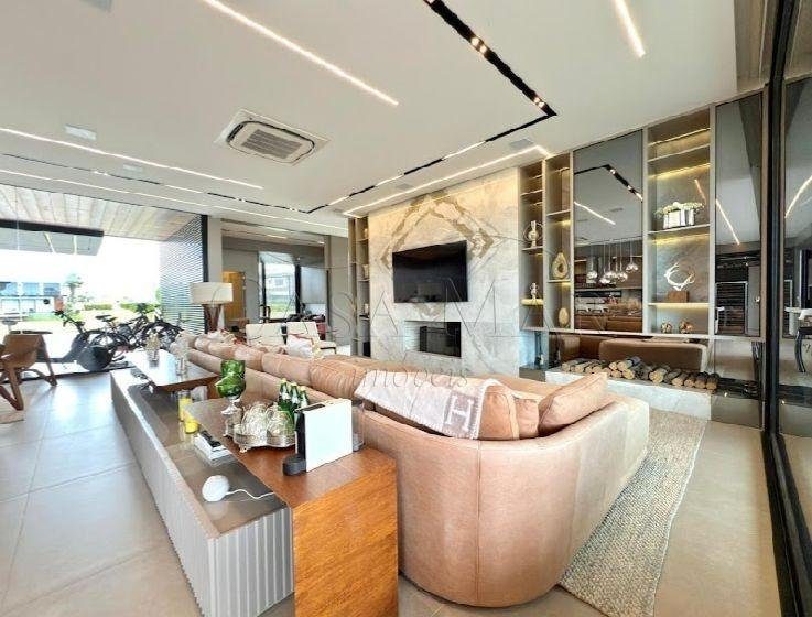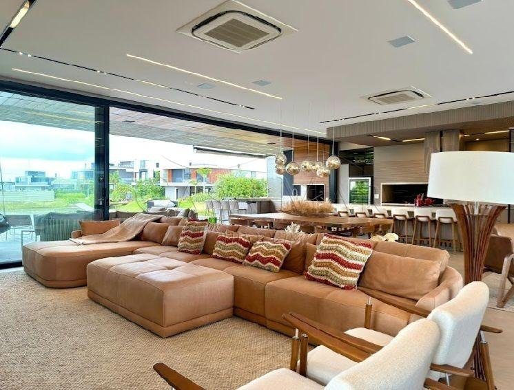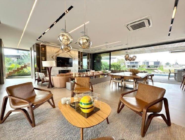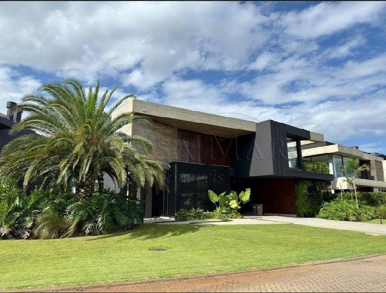 Belíssimo sobrado beira lago, no condomínio Sense, composto por 05 suítes, totalmente mobiliado e decorado, living amplo com lareira, lavabo, cozinha americana, espaço gourmet com churrasqueira, área de serviço, deck com piscina, vaga coberta para 2 carros.
