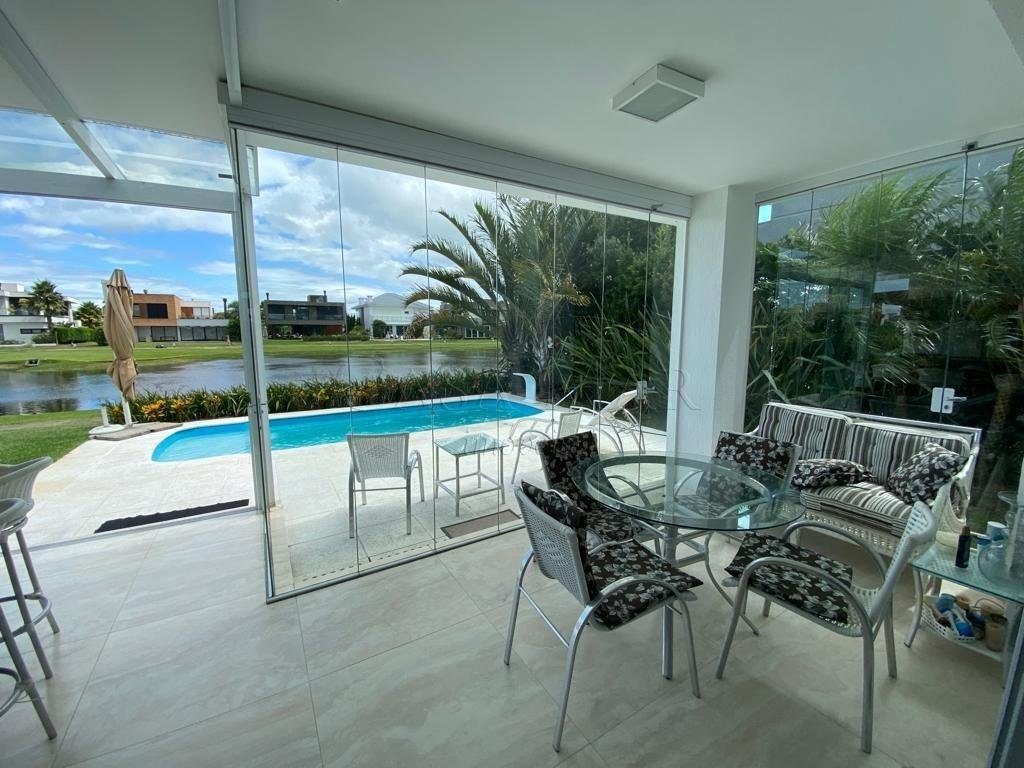 Belíssimo sobrado, composto por 04 suítes sendo todas com sacada, 01 máster com closet, 01 térrea, amplo living 03 ambientes com lareira e pé direito duplo, lavabo, cozinha estilo americana com gourmet, ampla varanda com churrasqueira, que pode ser integrada ao jardim ou reservada com o fechamento de vidro, amplo pátio com piscina aquecida, lavanderia, dependência de empregada completa, e abrigo para 02 carros, tudo isso finamente mobiliada e decorada pronta para uso.