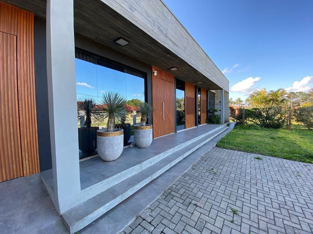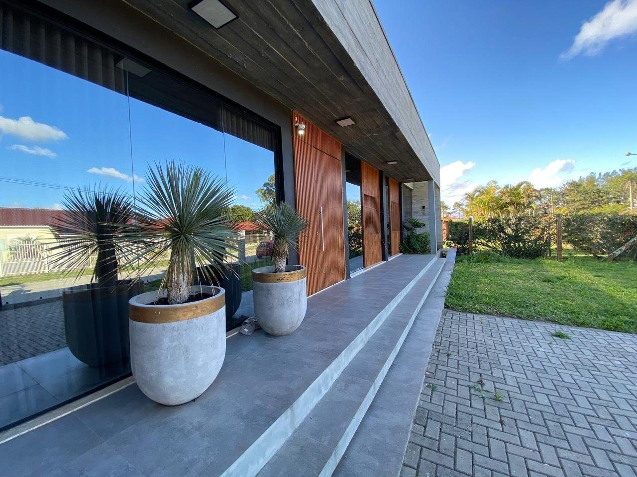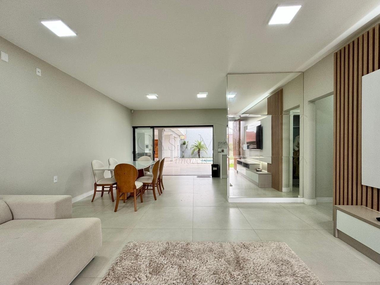 Casa térrea mobiliada, com ótima localização em região de moradores, projeto moderno com detalhes em ripado e concreto aparente, composto por 03 dormitórios, sendo 01 suíte, 02 banheiros, living em 02 ambientes, cozinha americana, espaço gourmet com churrasqueira, lavanderia, piscina e garagem para 02 carros!