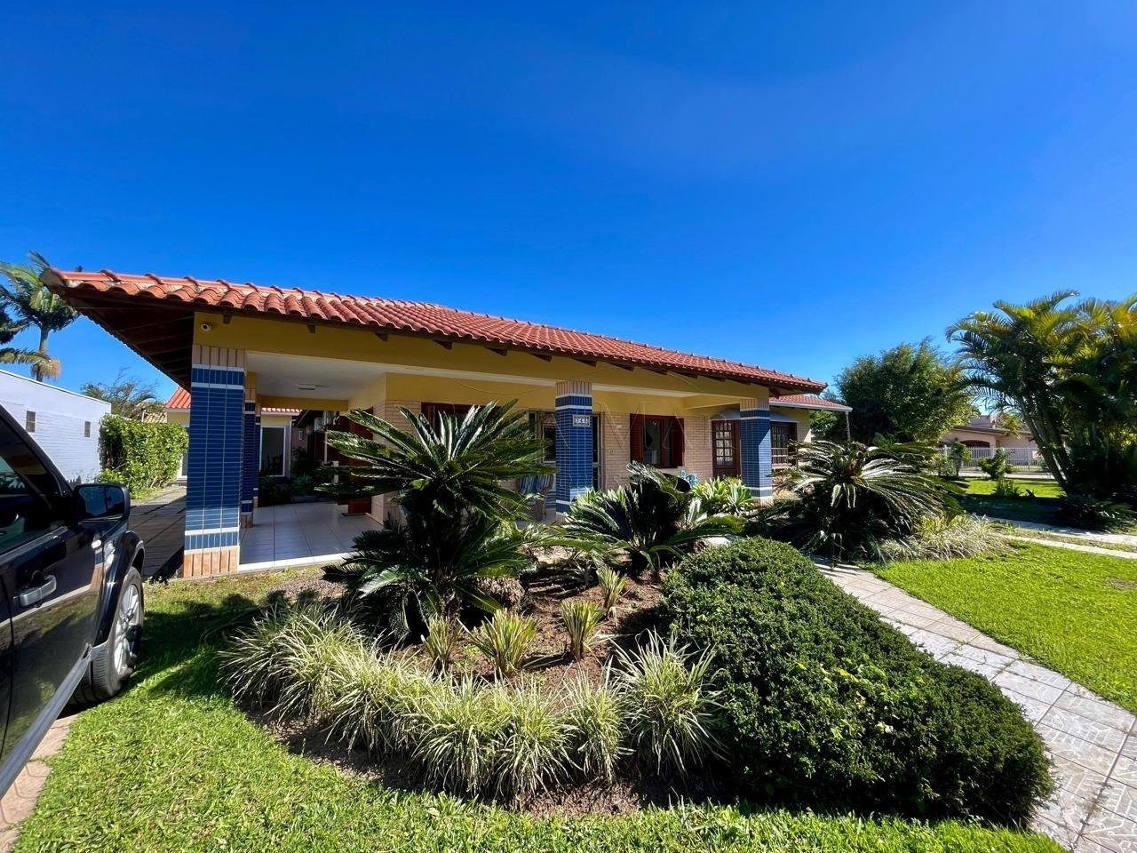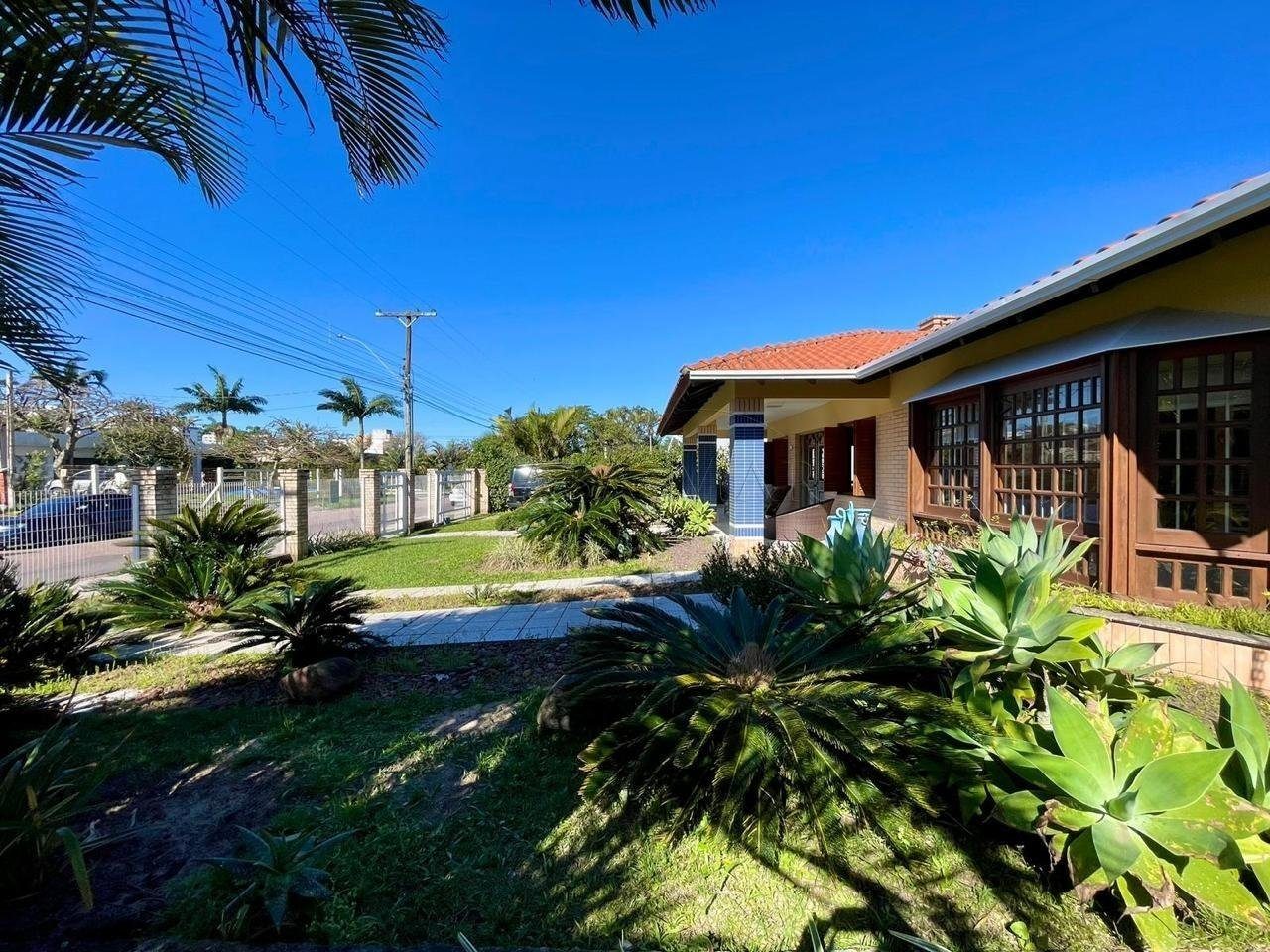 Casa de esquina forro em laje com 02 terrenos, com excelente localização em Atlântida, composta por 04 suites, lavabo, living em 04 ambientes, cozinha americana, salão de festas com espaço gourmet e churrasqueira, área de serviço, amplo pátio com piscina e vaga para carros!