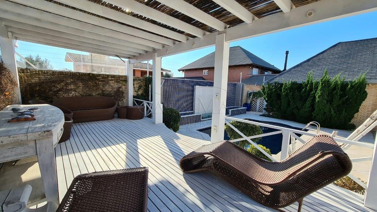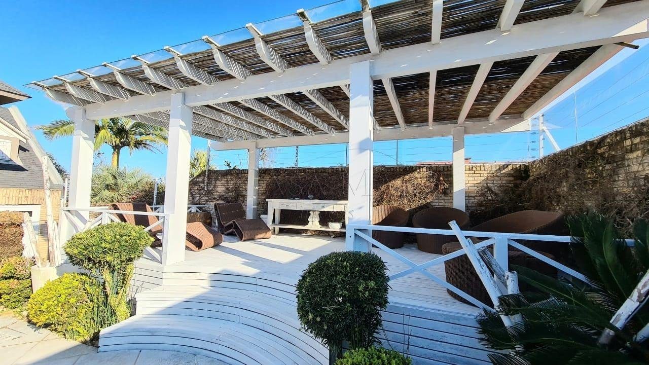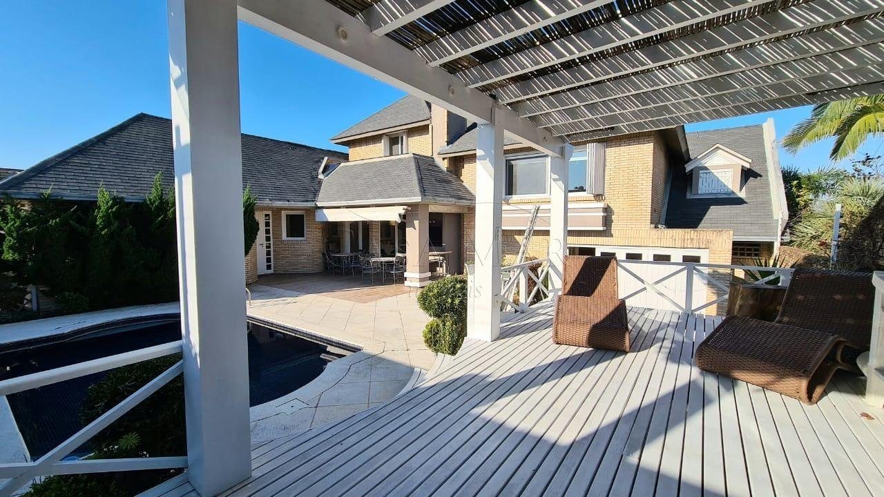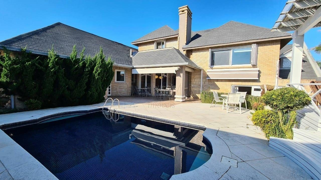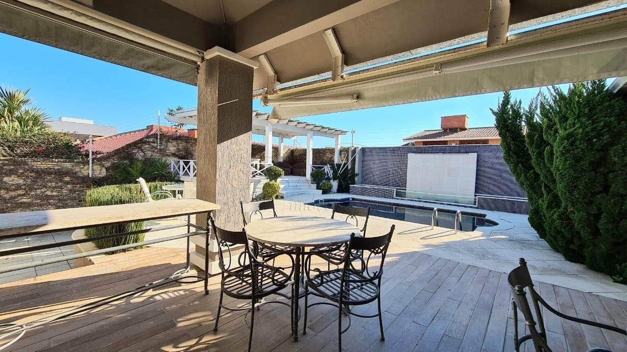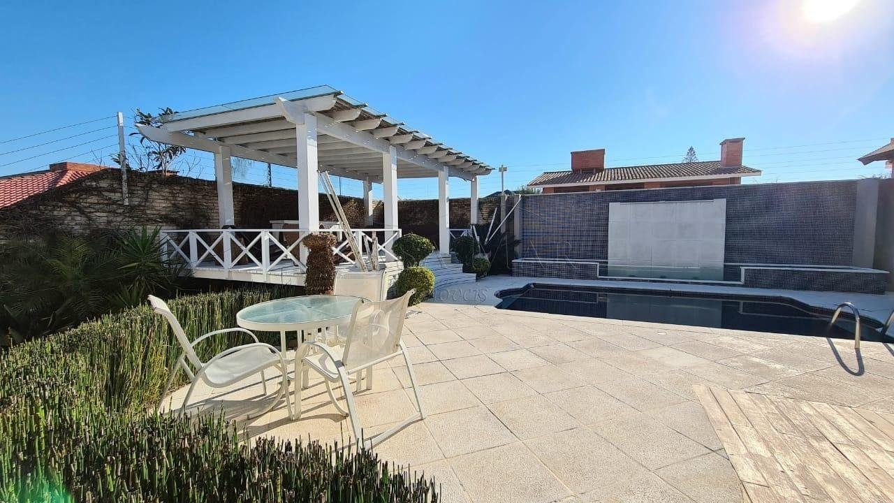 Próximo a plataforma de pesca com 384 m² de área privada, composto de 04 dormitórios (02 suítes), sala de estar (com lareira), sala de jogos, sala de jantar (com bar e chopeira), acesso ao pátio (com churrasqueira), piscina em concreto aquecida, deck com pergolado coberto, casa de caseiro e deposito.